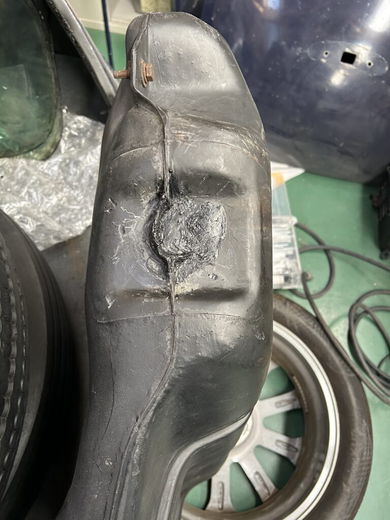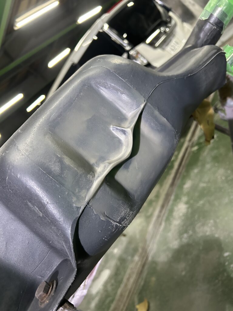 ボディなどに使用されている高張力鋼鈑を、技術・知識・経験を活かし、金槌による鈑金にこだわりパテの使用を減らしています。曲ったフレームもフレーム修正機により、寸法図通りに修正します。