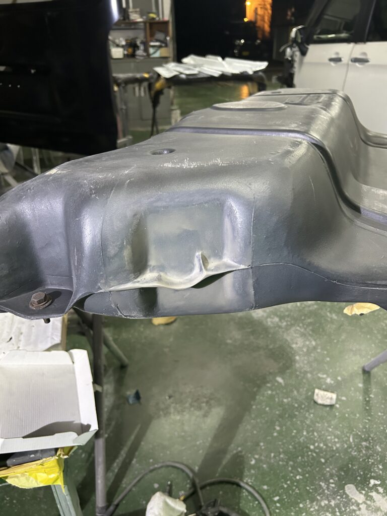 ボディなどに使用されている高張力鋼鈑を、技術・知識・経験を活かし、金槌による鈑金にこだわりパテの使用を減らしています。曲ったフレームもフレーム修正機により、寸法図通りに修正します。
