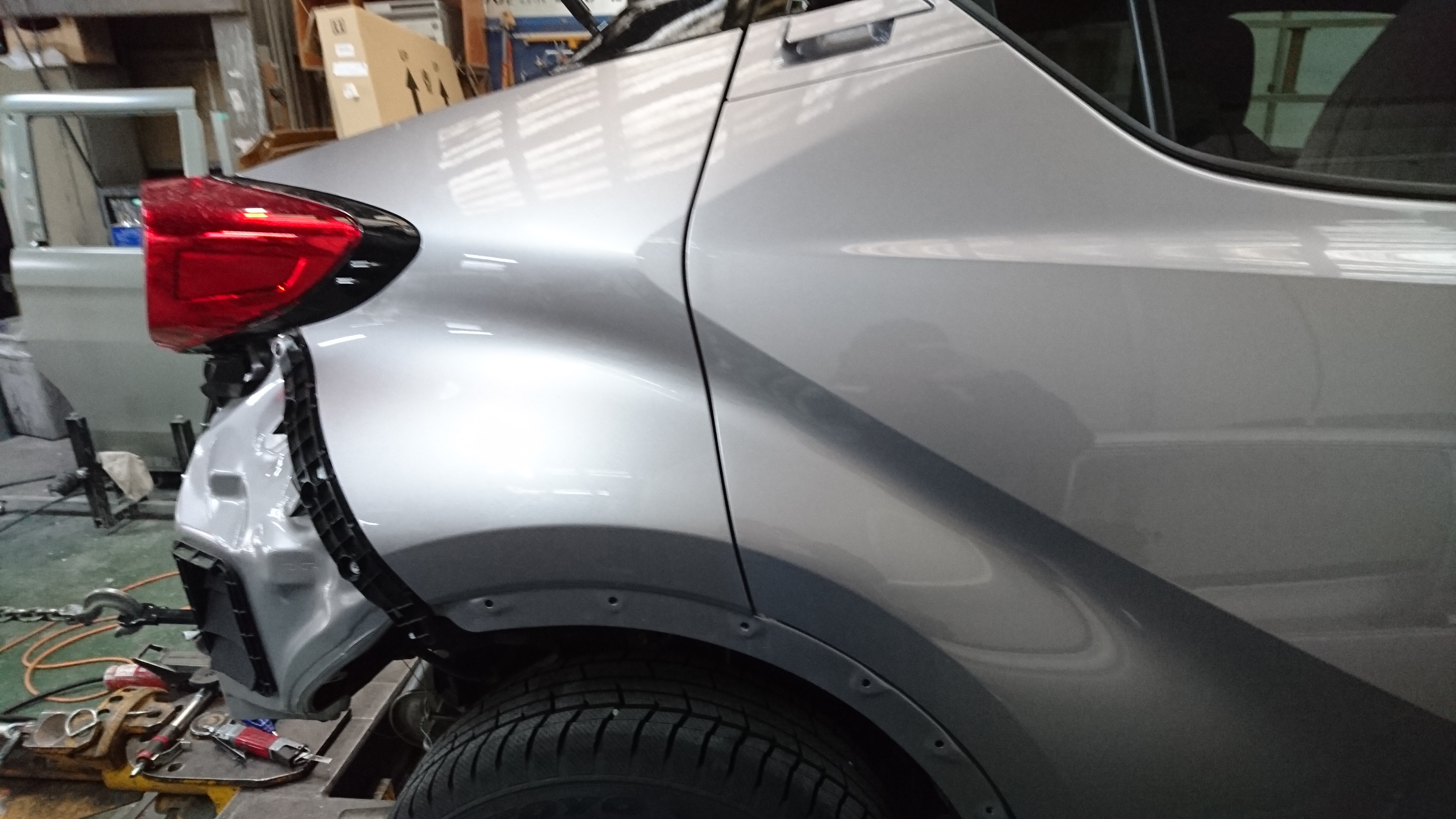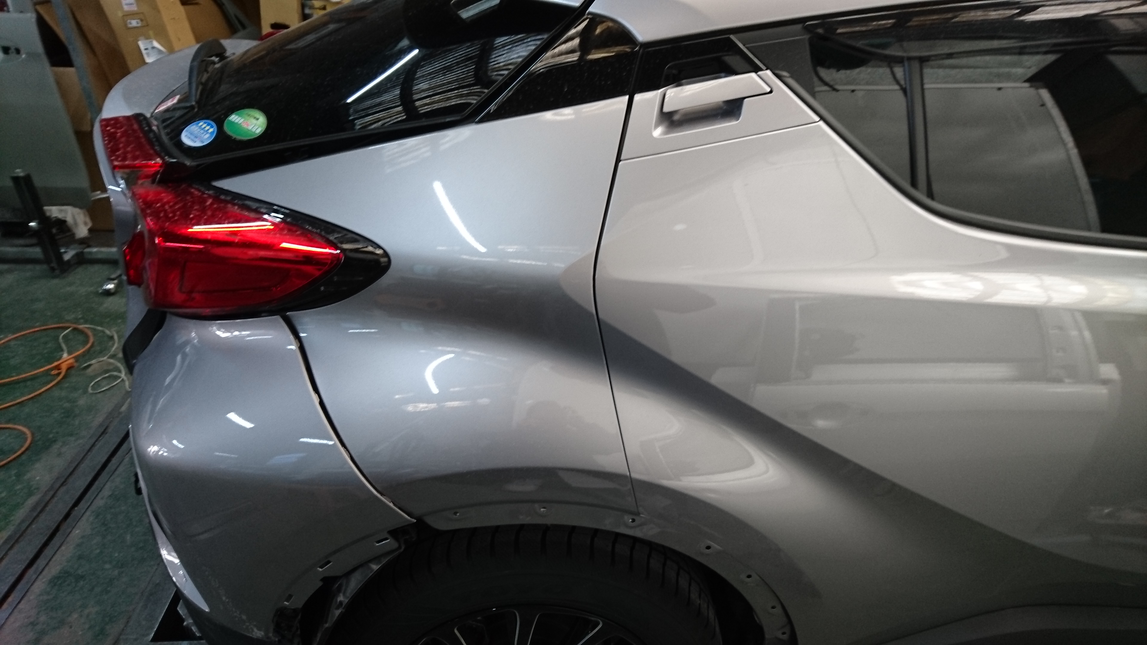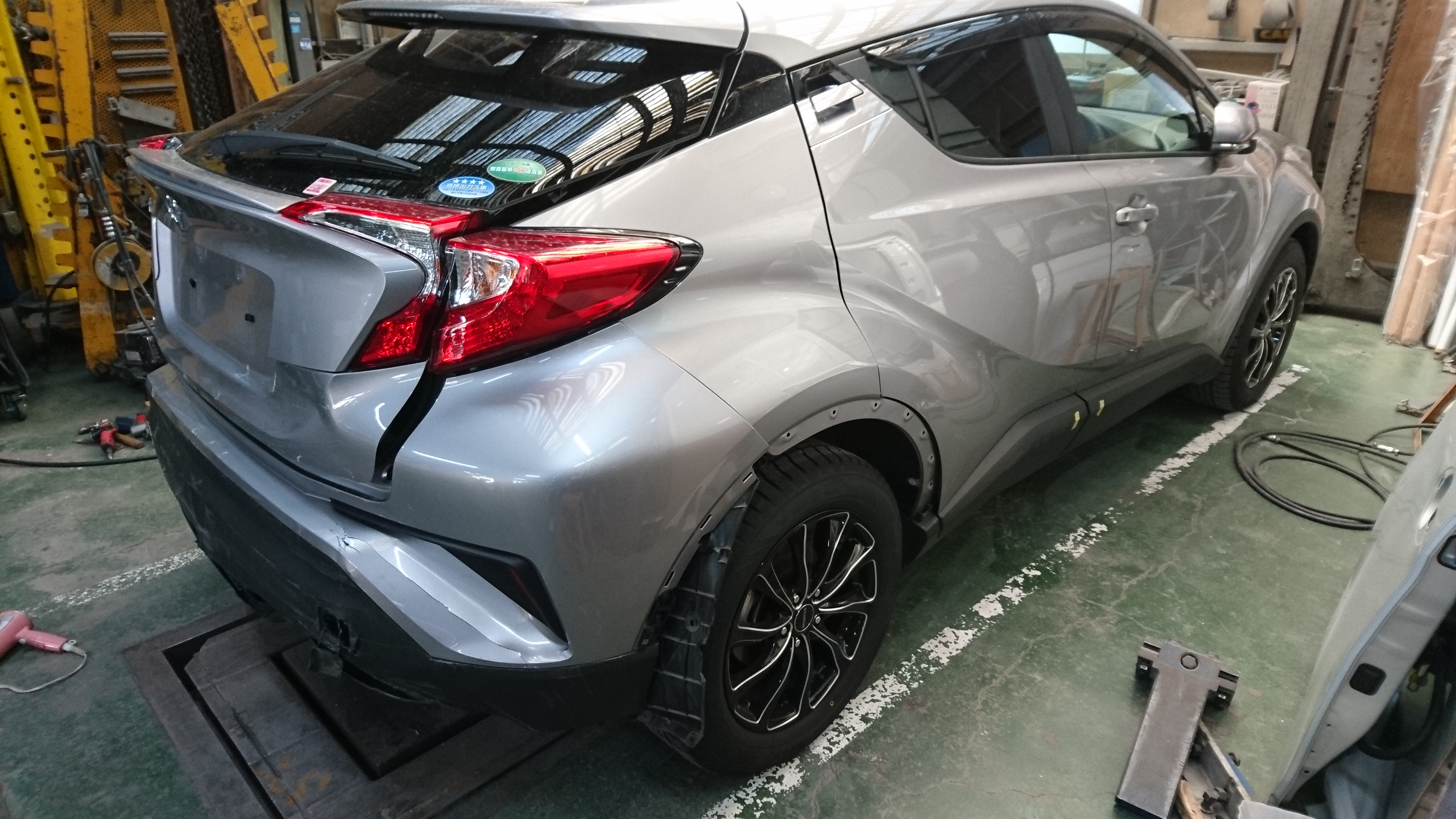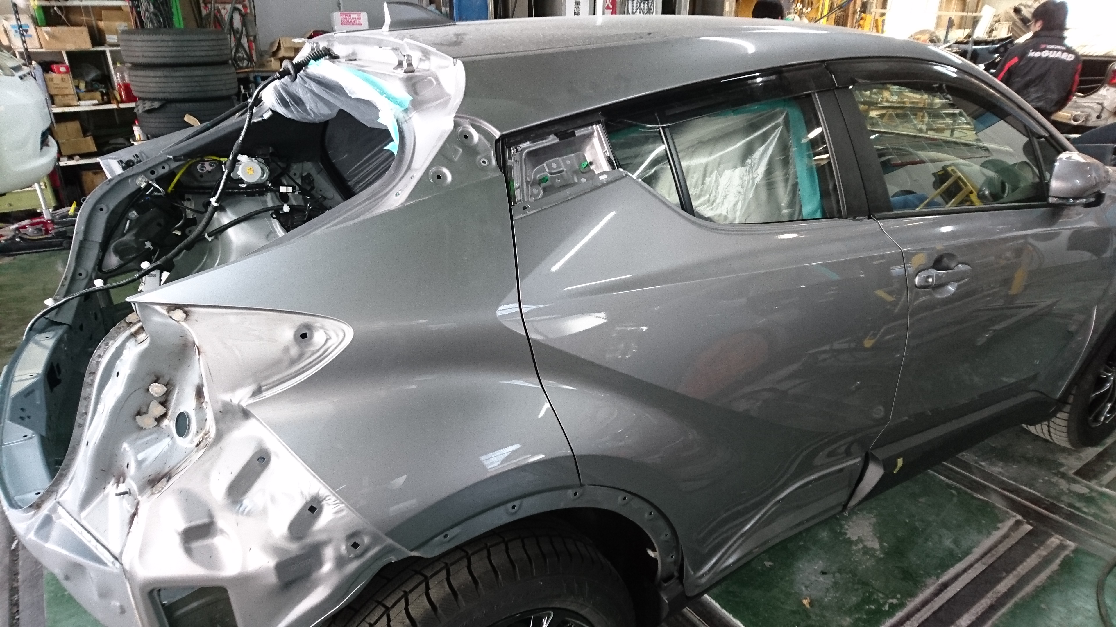 CH-R 板金塗装です! ノジリブログ 2018年3月1日 追突事故にあい入庫しました! かなり押されてクォーターとドアの隙間がありません! ばらして修正機で引き出します! ドアの隙間は出ましたが、フロアの影響がだいぶあったので交換しました! マフラーで足回りまで押されて変形していたので、足回りも交換です! リアフレームも外し、徐々に仮合わせしていきます! 仮合わせ後、本溶接して下廻りの塗装シーリングを先に済ませてから、足回りを組み付けます 外範パーツの下地をして、塗装です! 磨き、組み付けで、完成です! Facebook Twitter LINE