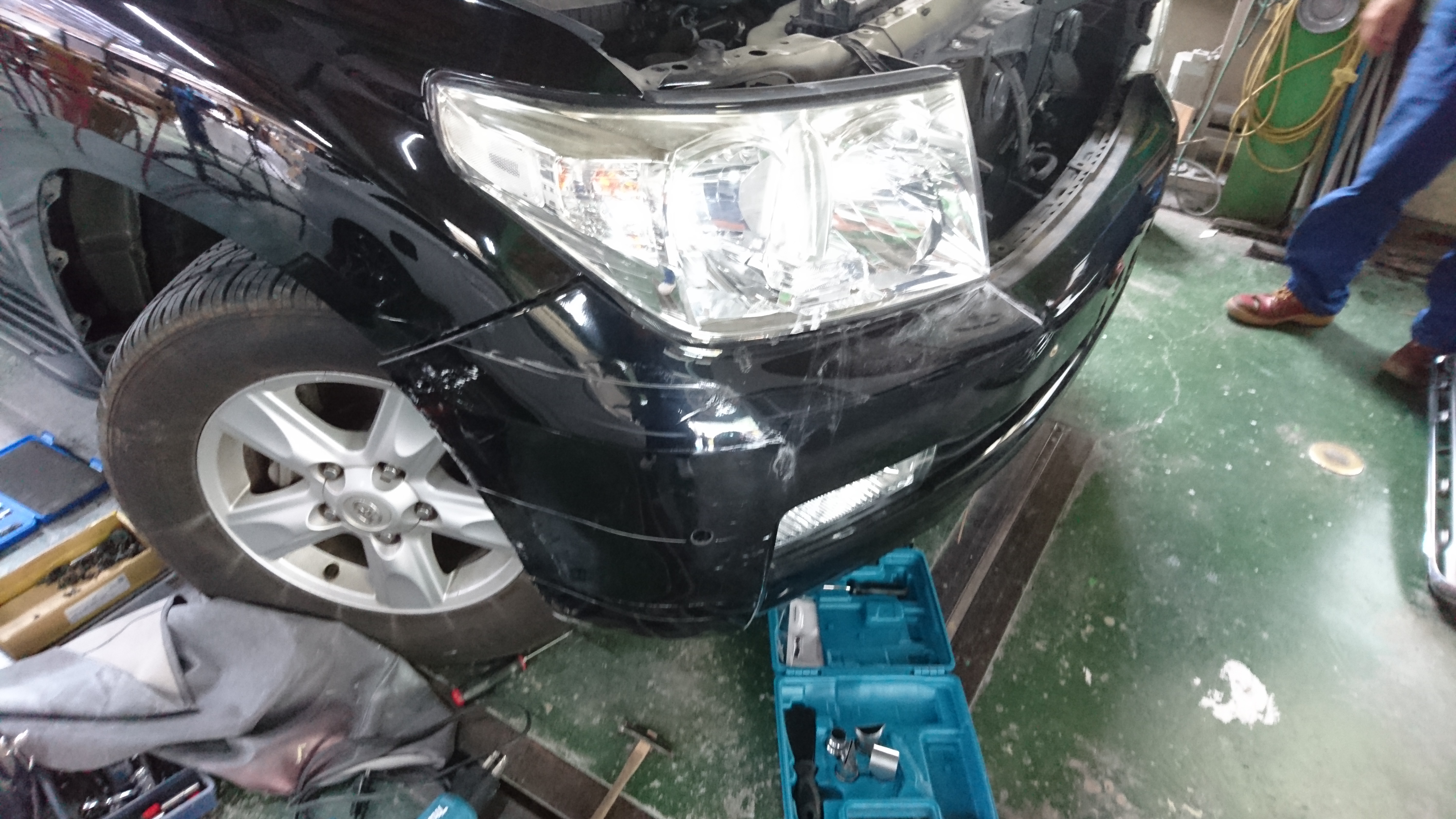 バンパーを外して、修正して仮合わせで、チリ具合を合わせます!