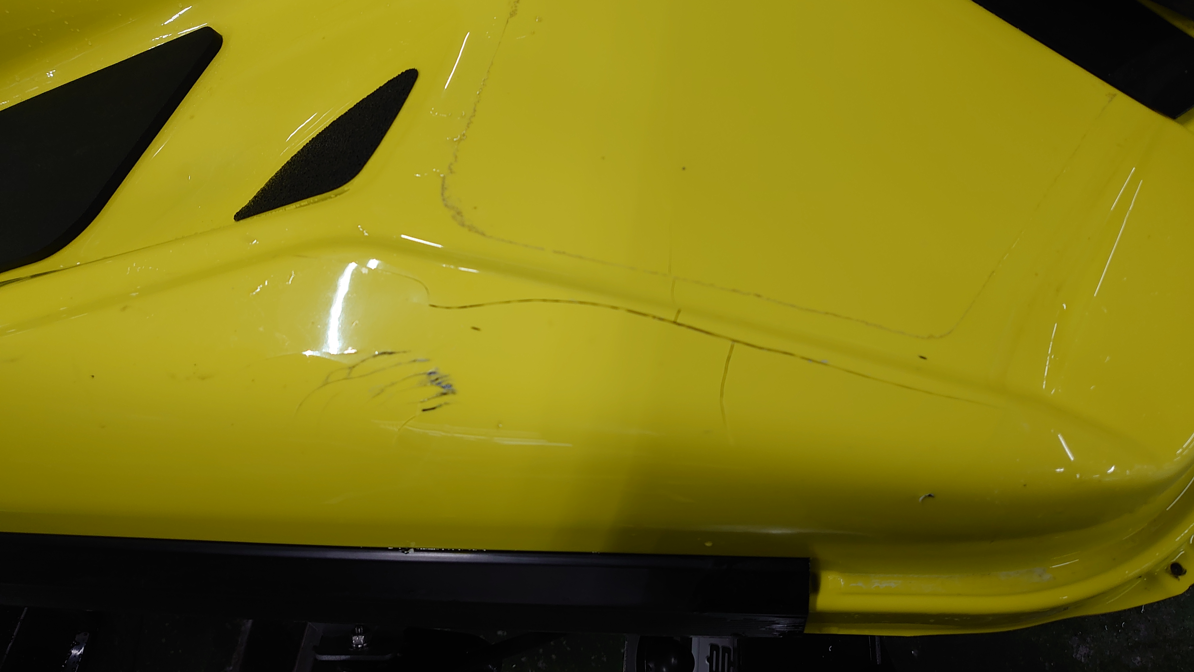 後方の左サイドに乗り上げにより、表面が割れてしまっていました!