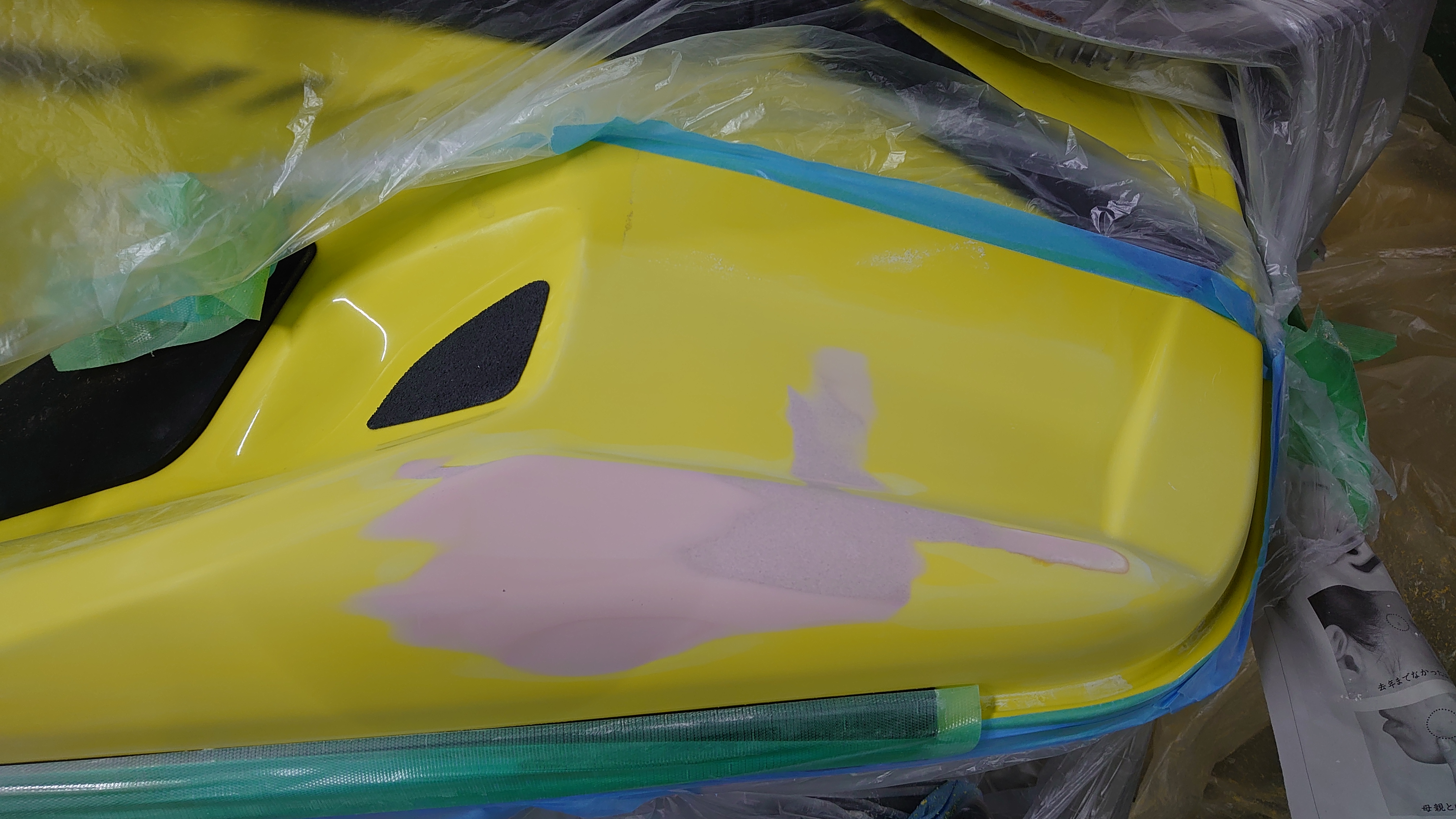 車とはまた、違った色合いの黄色だったので、調色に少し時間をとられましがいい感じに仕上がりました!