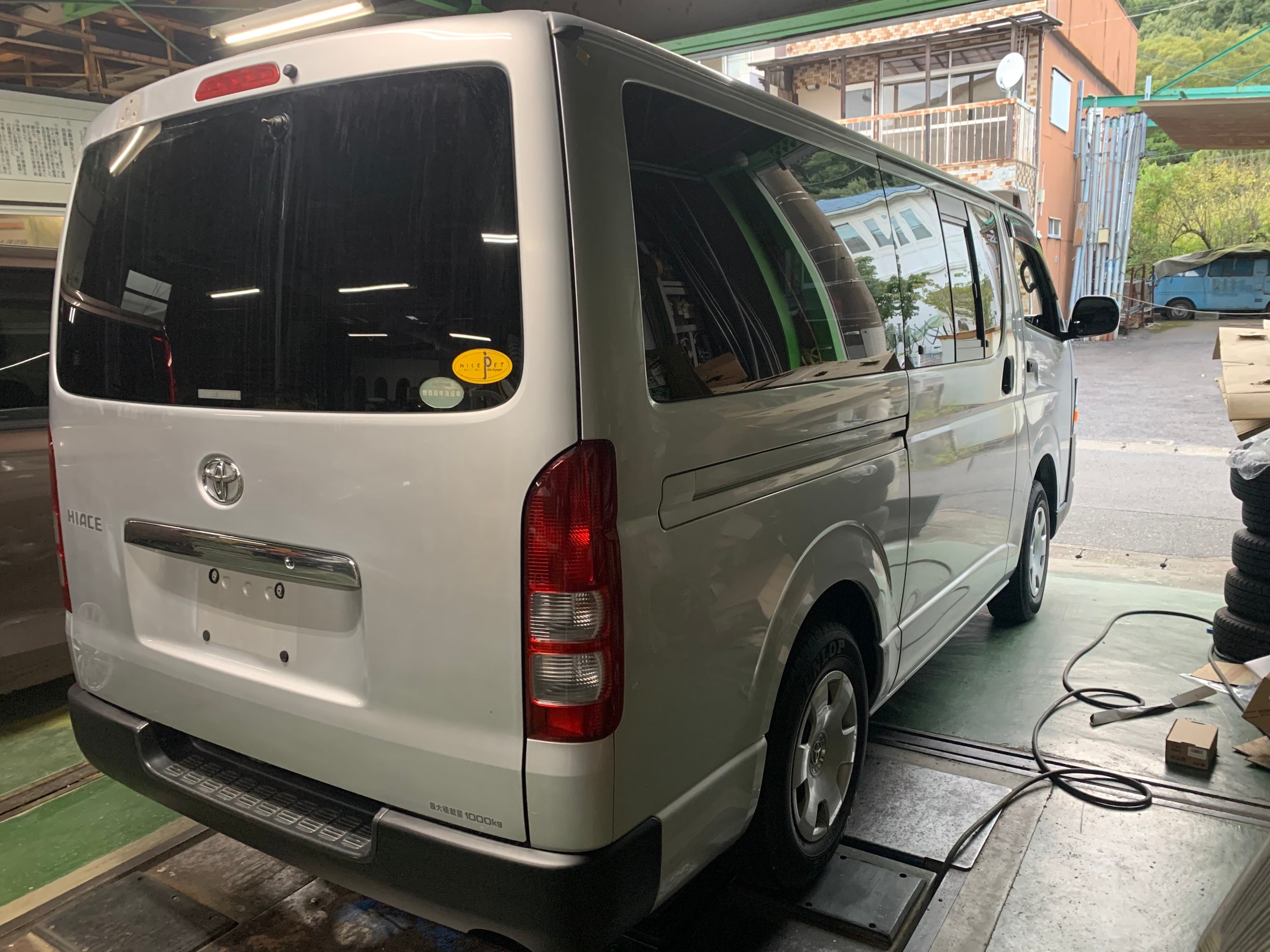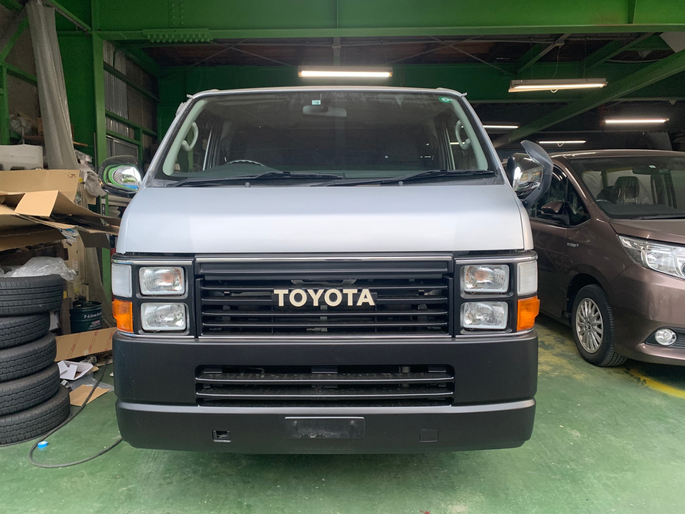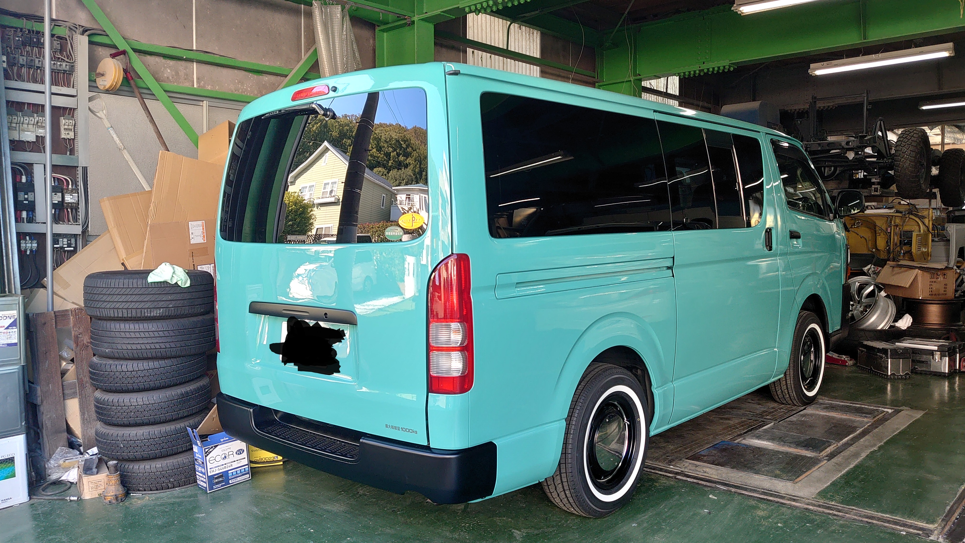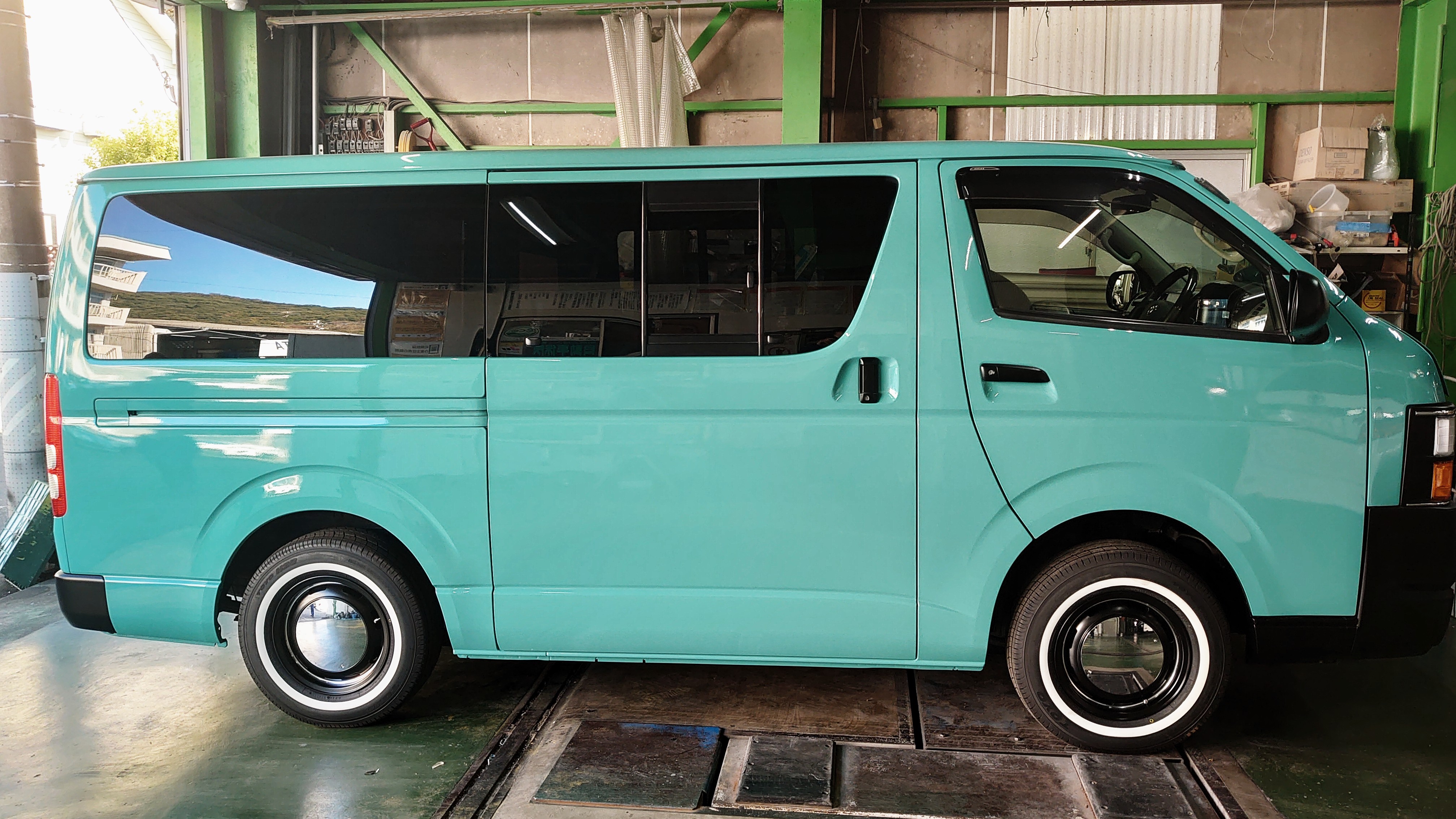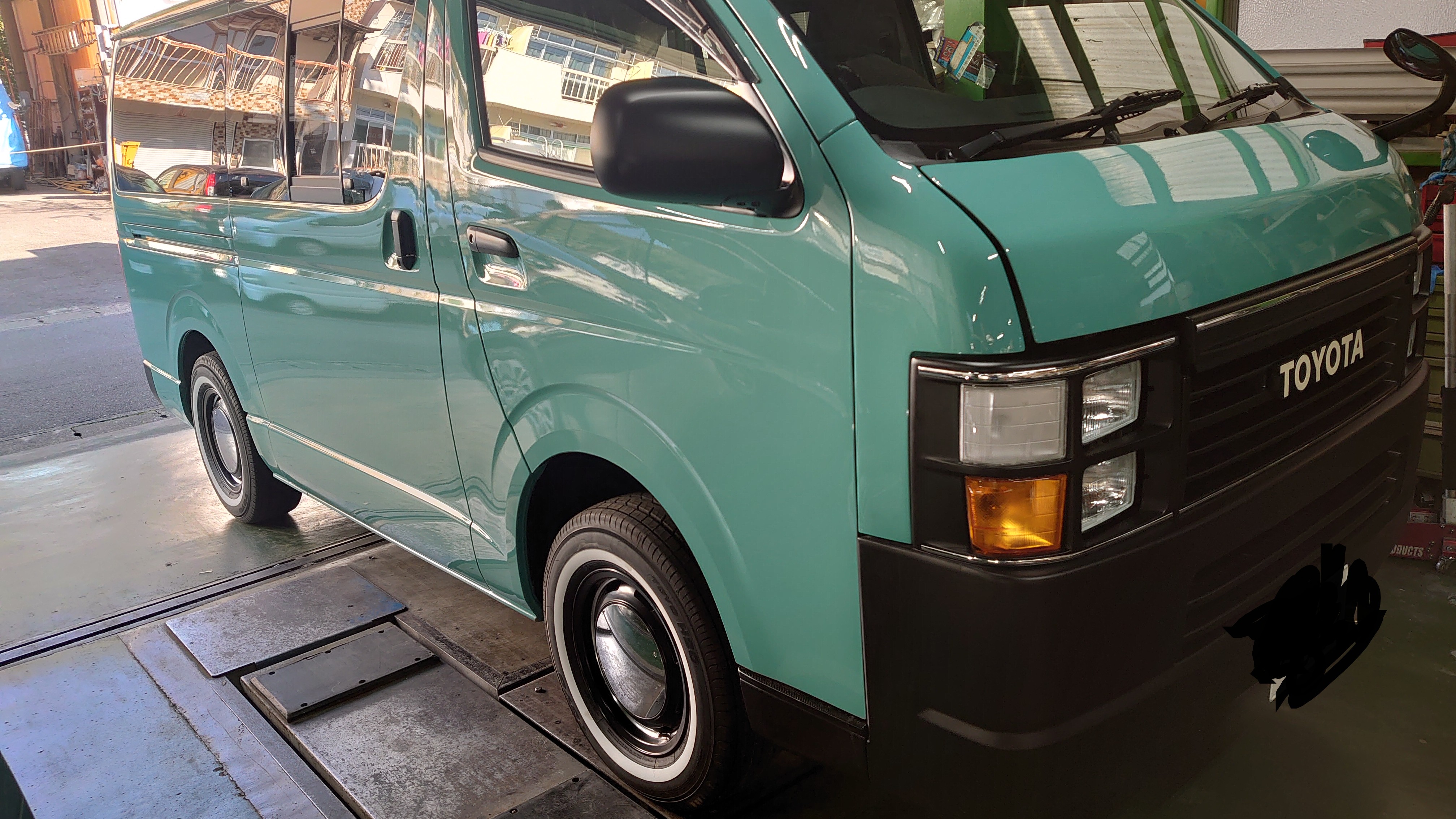 ハイエース 全塗装 ノジリブログ 2021年11月11日 ハイエースこ全塗装のご紹介です。 ベース車両です。 すでにヘットライト4灯化や、ボンネット、フェンダー、バンパーもカスタムされていました! いきなり完成になってしまいましたが…(笑) ボディ色はオリジナルグリーン リアゲート トヨタマーク スムージング アルミホイール&ホワイトリボンタイヤ スーパーGLの内張り加工取り付け 車検 などなどたくさんの作業の御依頼ありがとうございました Facebook Twitter LINE