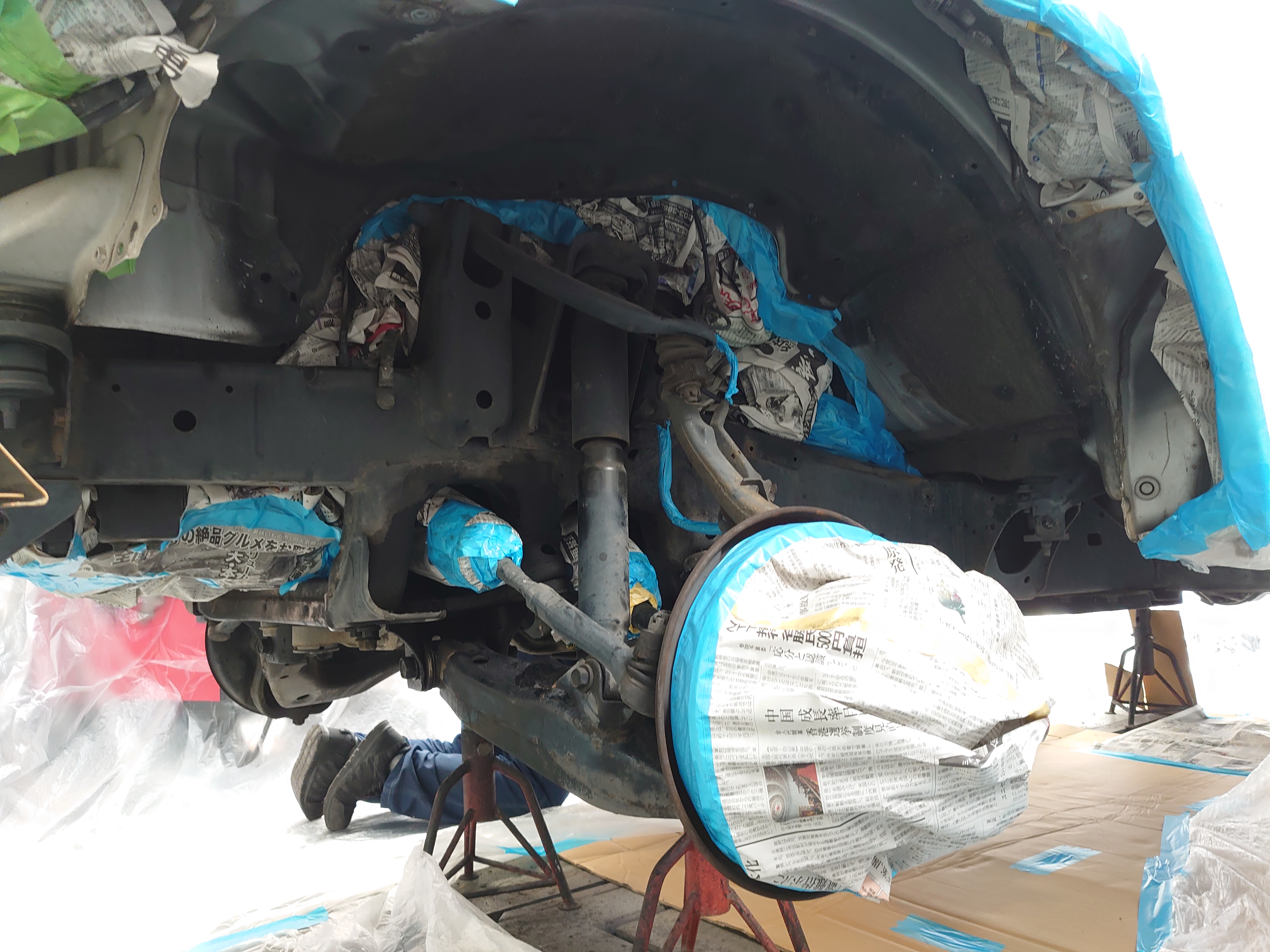 キッチリと膜圧をつけて、アンダーコートを付着し、外したパーツは単体で裏表施工です。