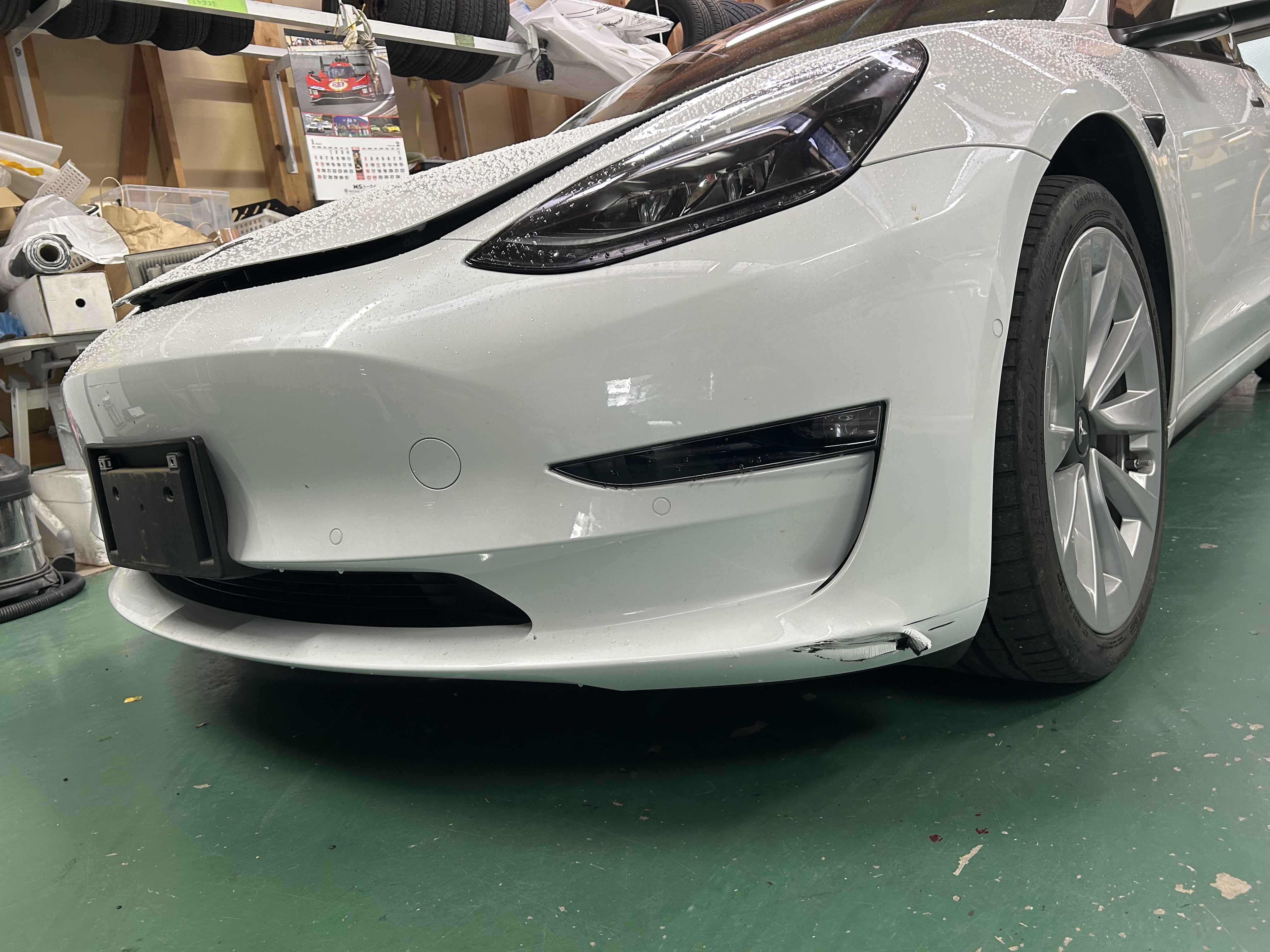作業報告です。 ノジリブログ 2025年3月16日 バンパー修正が続いています。 テスラ モデルIII タイヤ交換以外では初の作業になります。 左下になかなかの損傷で変形、穴もあいてます 変形箇所は熱を使い修正、穴あき箇所を溶着でなるべく薄いパテで型を形成しました。 サフェーサー、一本足付け、調色です 塗装して磨き組み付け 綺麗に修正終われました。 お客様にも新品取り替えでは無かったのでコストも抑えられ喜んで頂けました! Facebook Twitter LINE