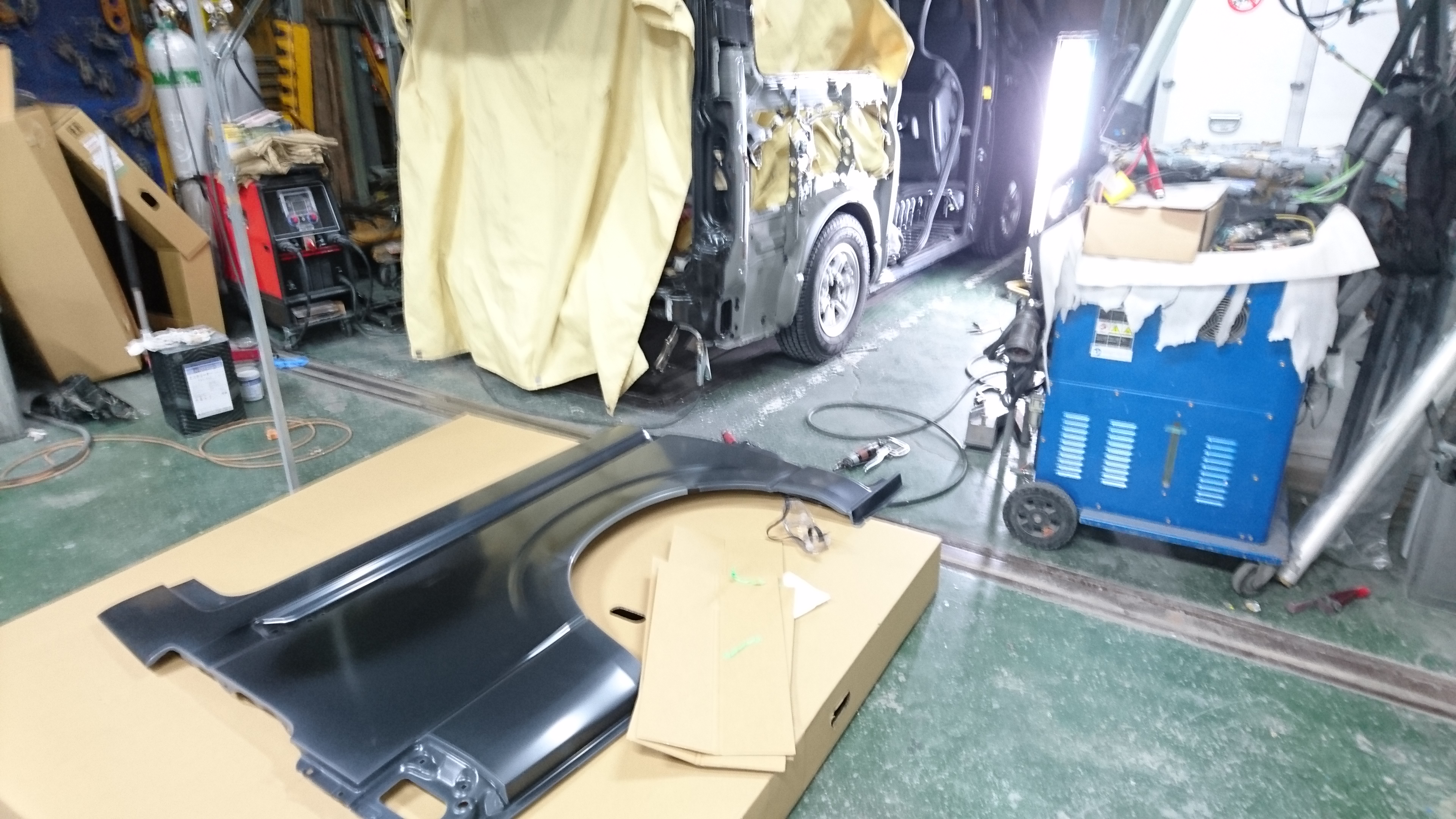 ハイエース4型の板金塗装です。