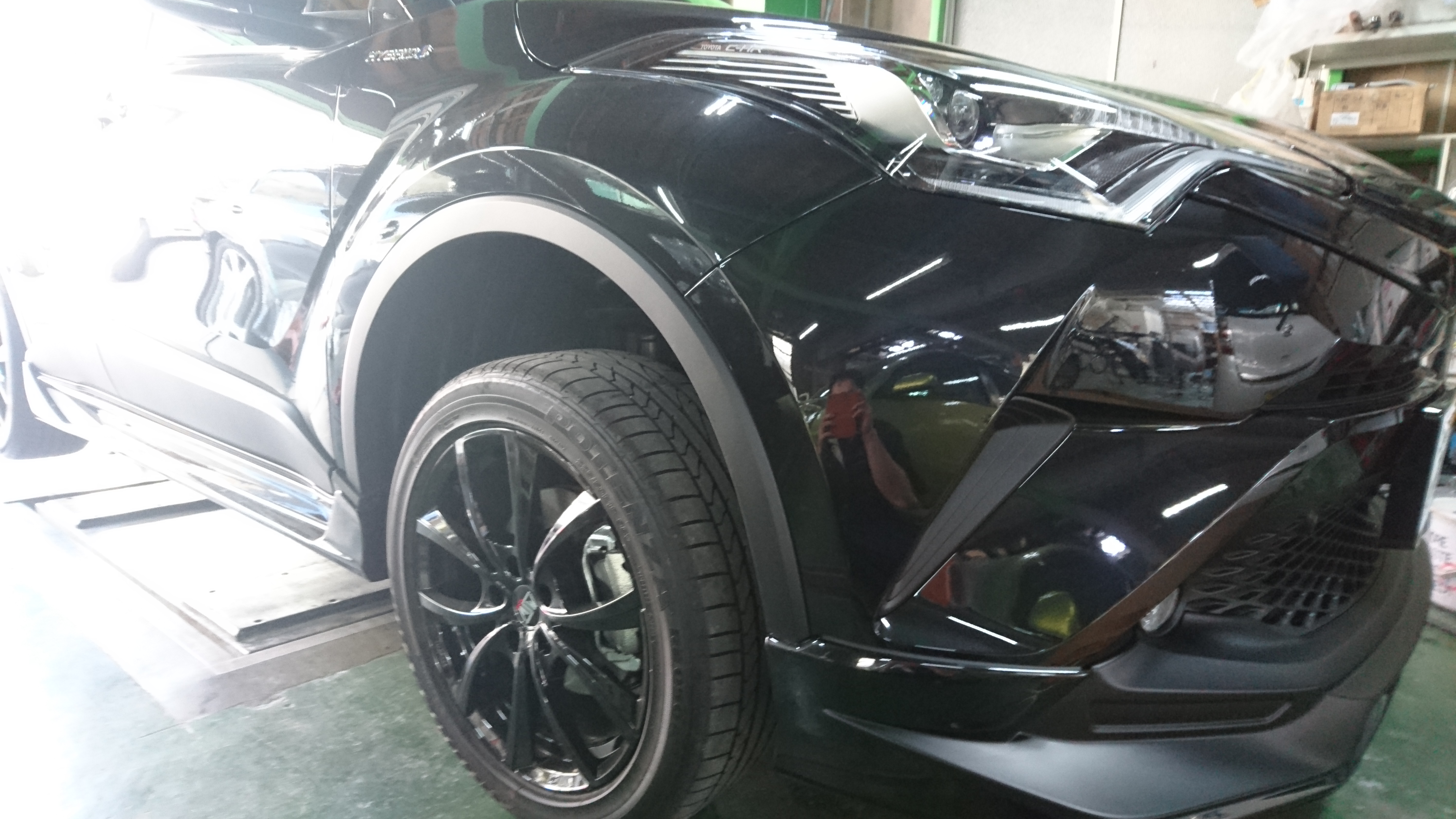 こちらも下地処理、清掃、マスキングをキッチリやってトヨタの221(ブラッキッシュアゲハ)を塗装して、CH-Rステッカーを貼って仕上げていきました!