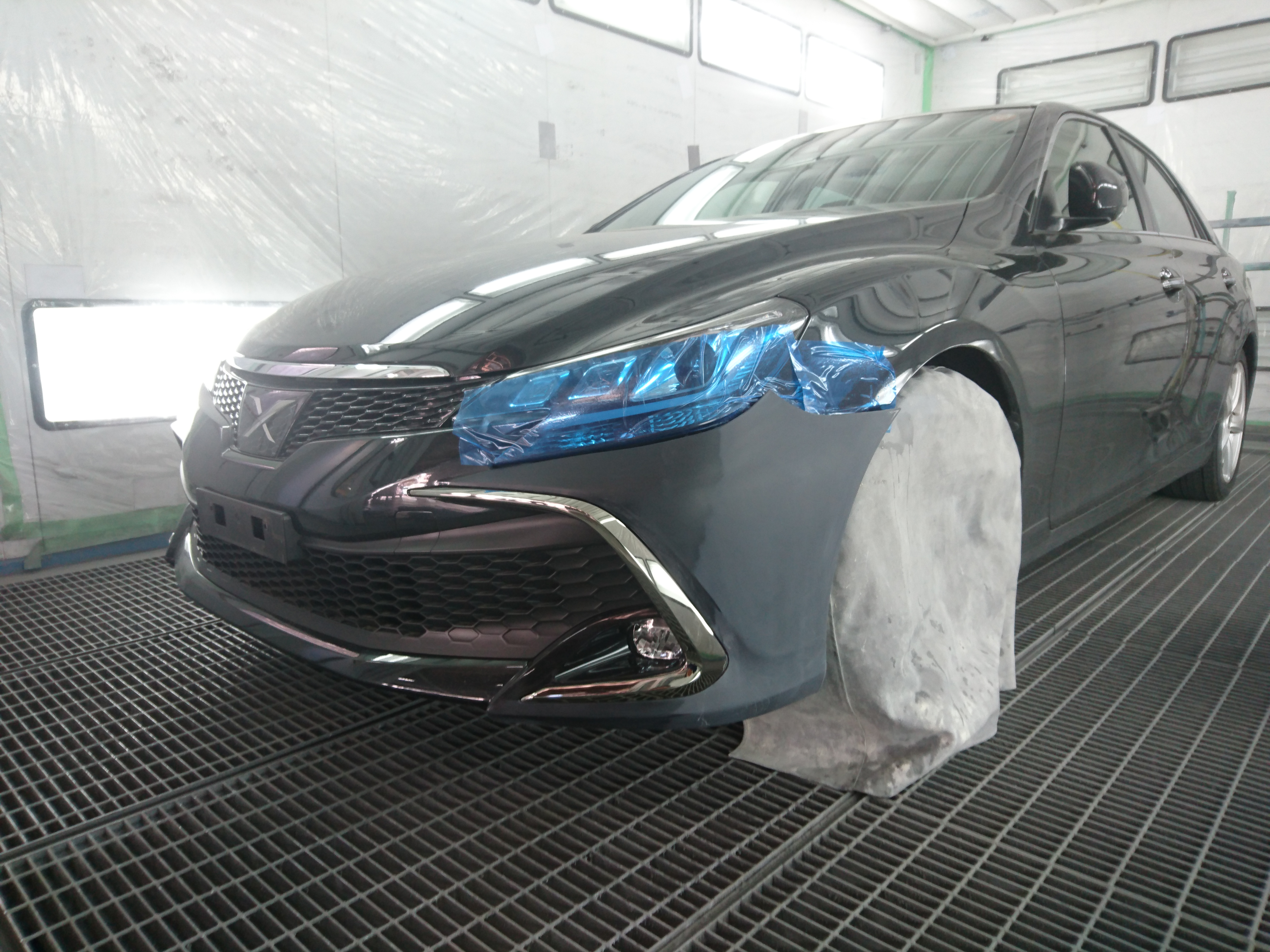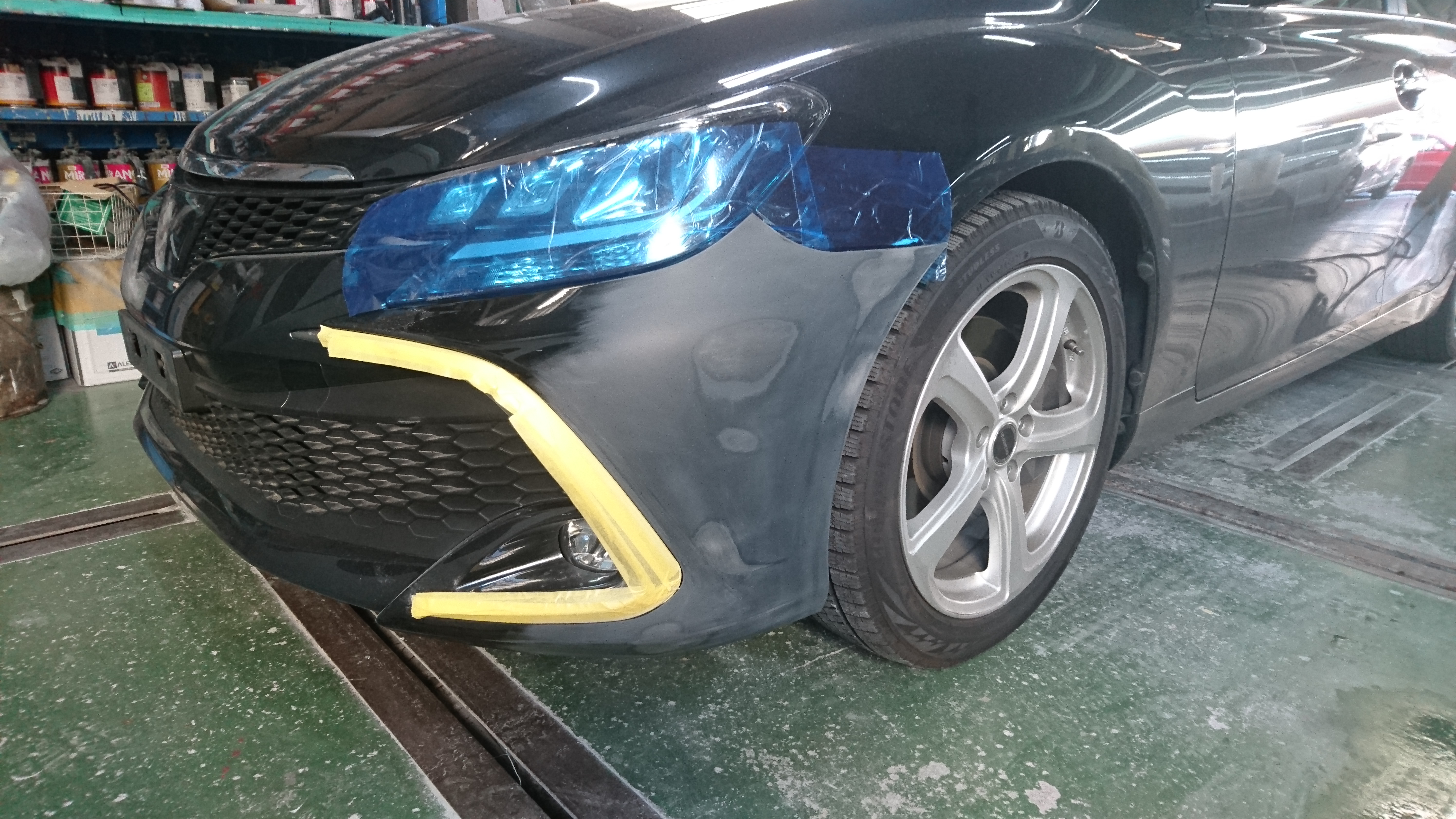 部分補修でも、ボディー全体をしっかりとマスキングをします!