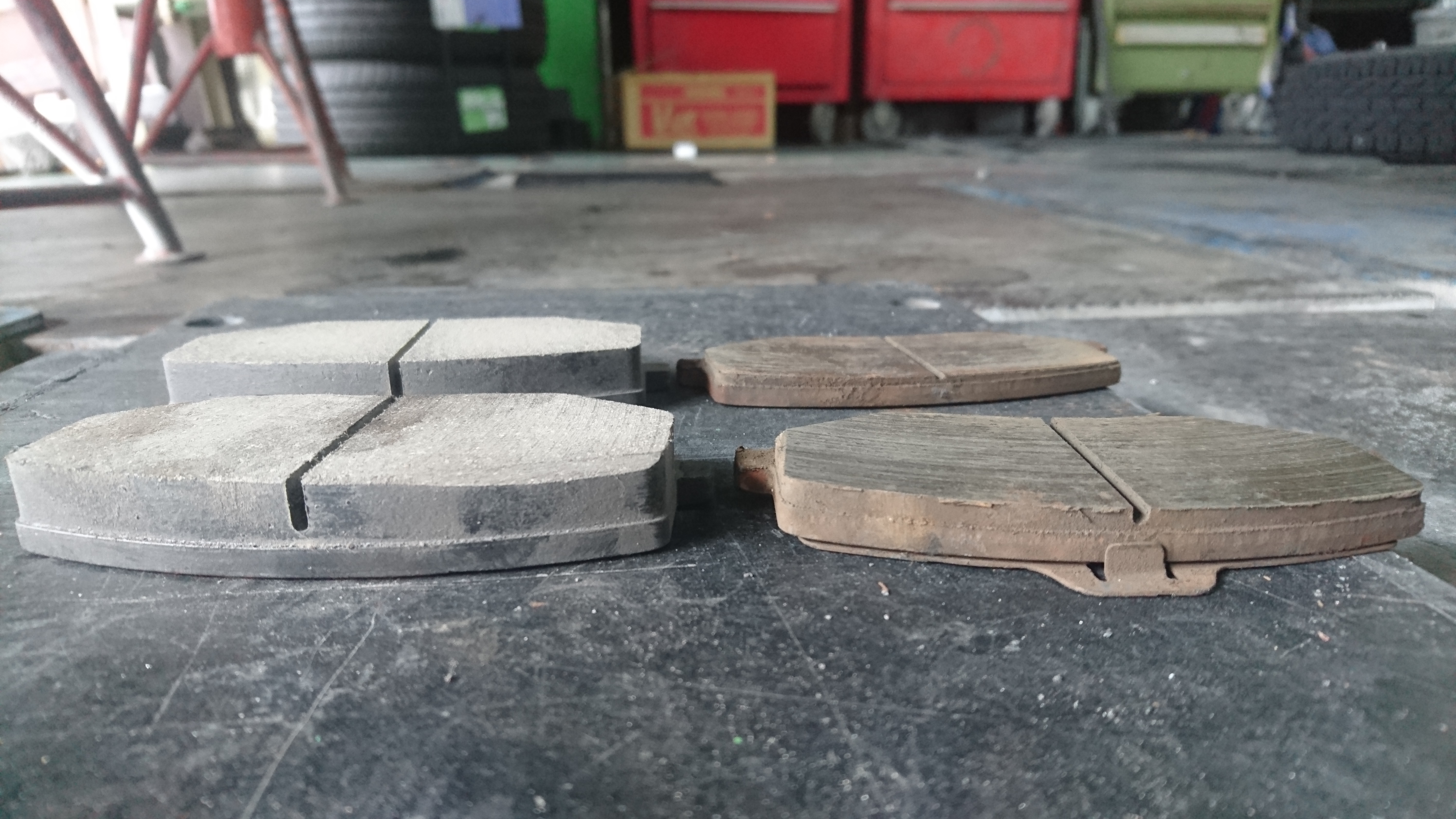右が、減ってしまったブレーキパットです!
