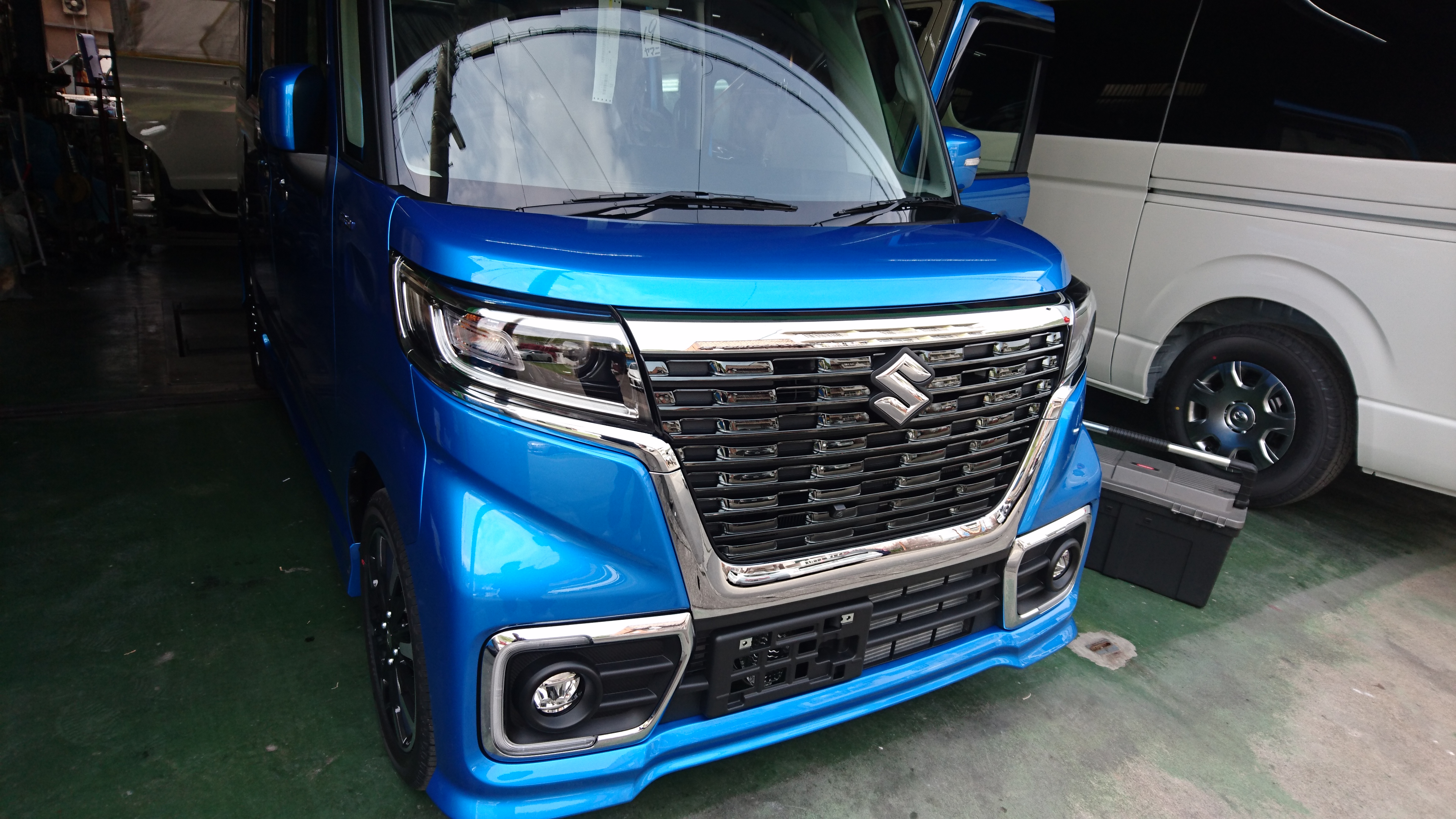 連休前までの仕事が重なりバタバタしていましたが、何とかなりました! スペーシアカスタム 新車 ドラレコ、ETC、ナノグラスコーティング・ambassador施工