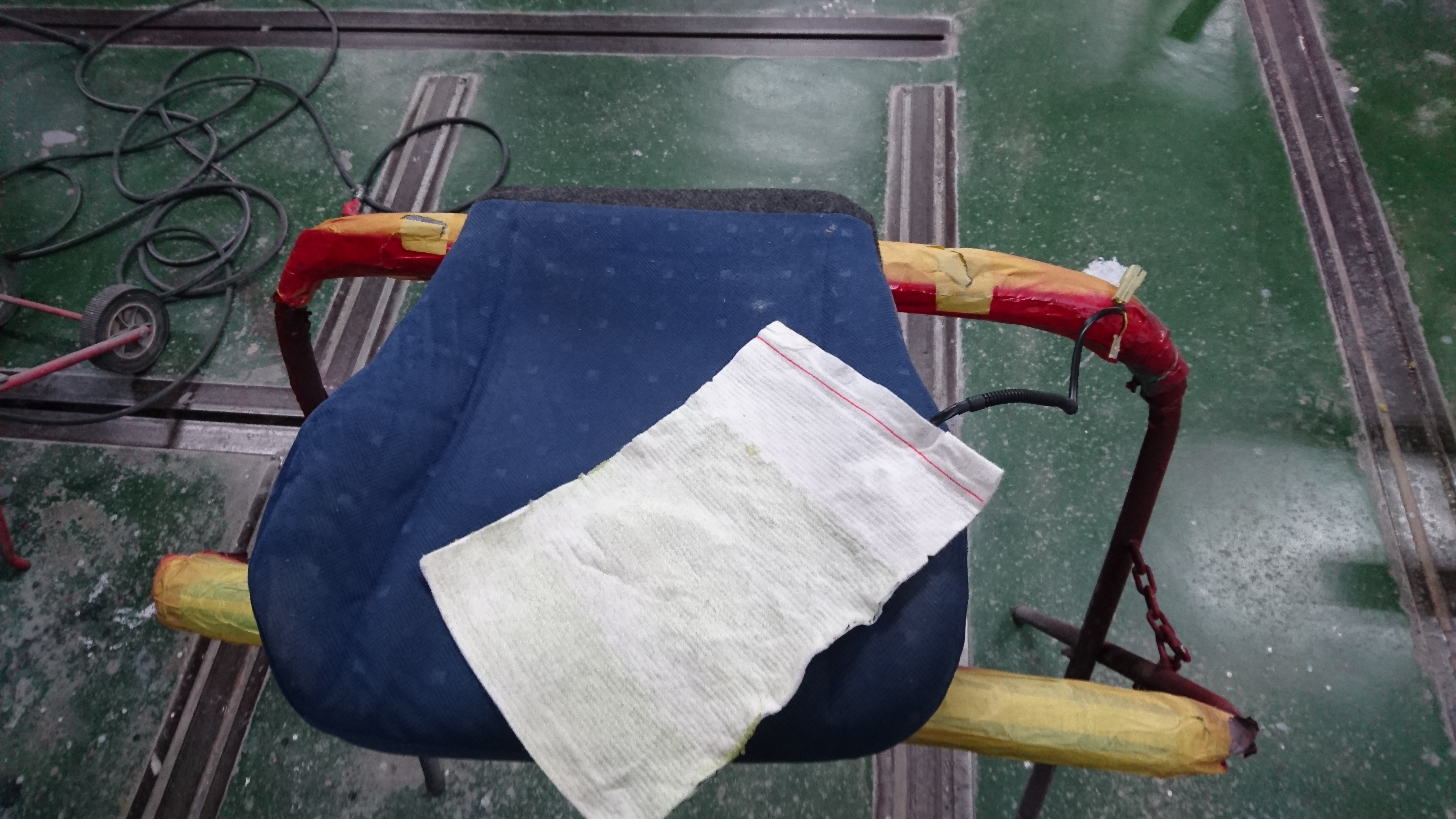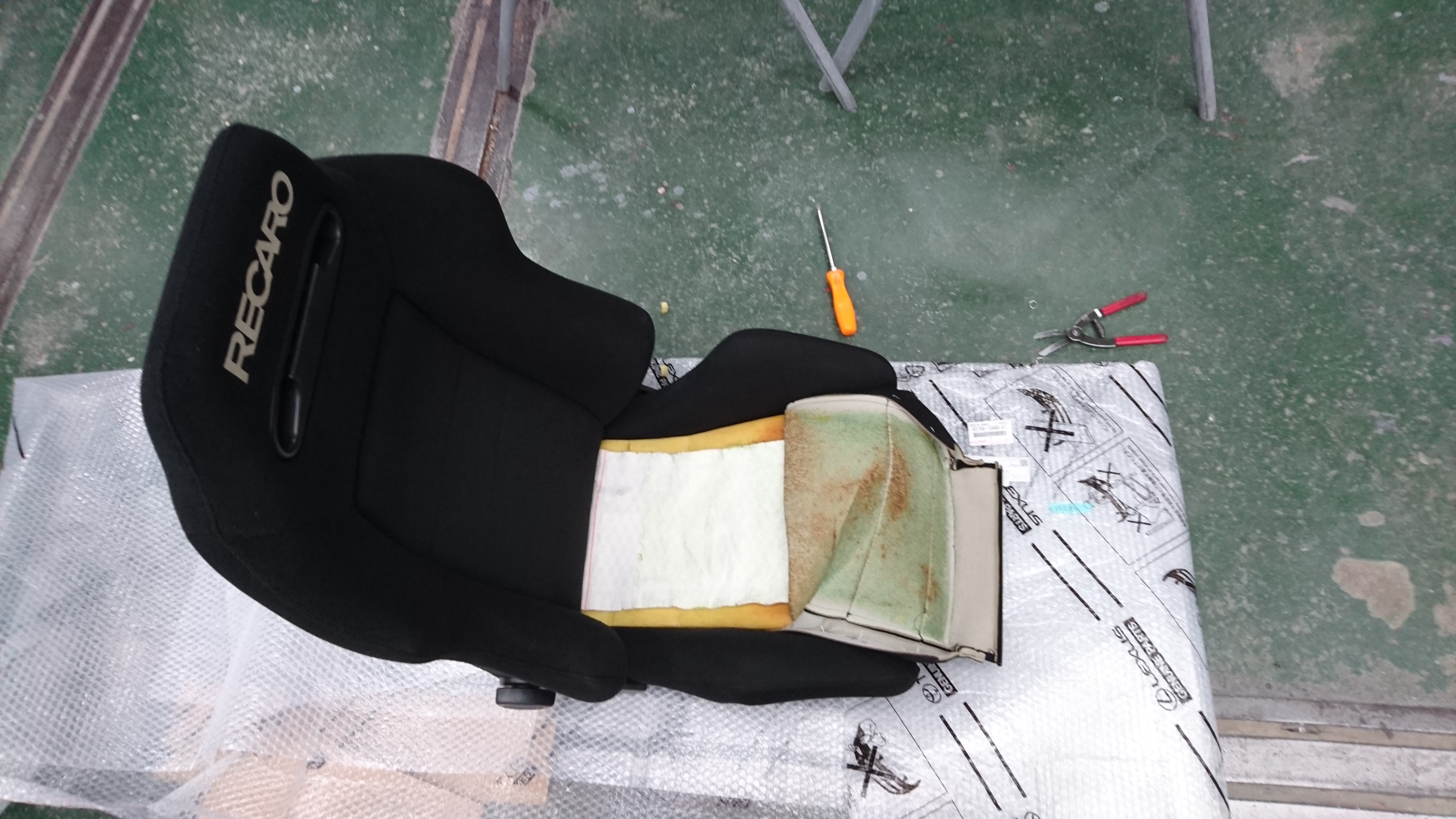 純正シートから、シートヒーター部分を外します!こんなシートみたいな物でビックリしました!笑