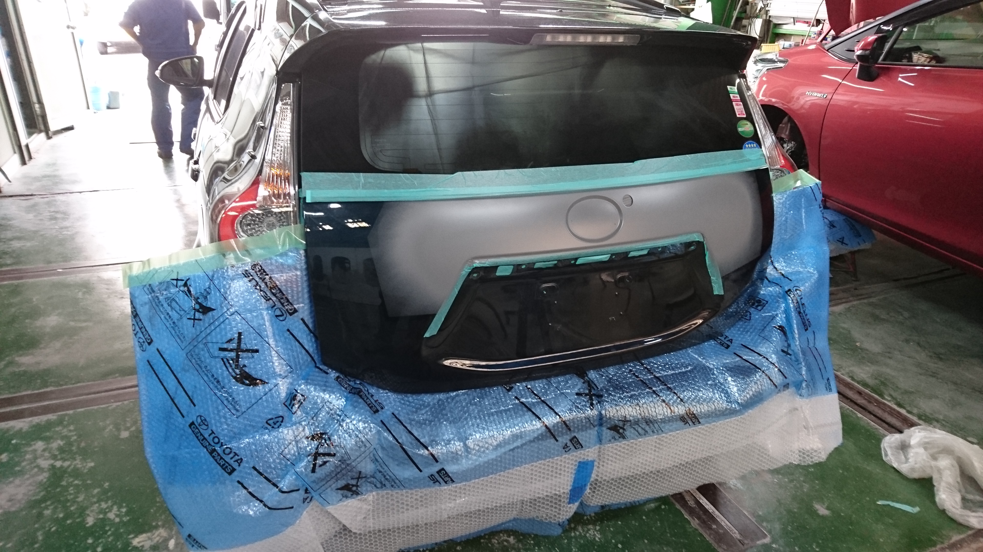 アクア 右リアフェンダー交換、バックパネル交換です!