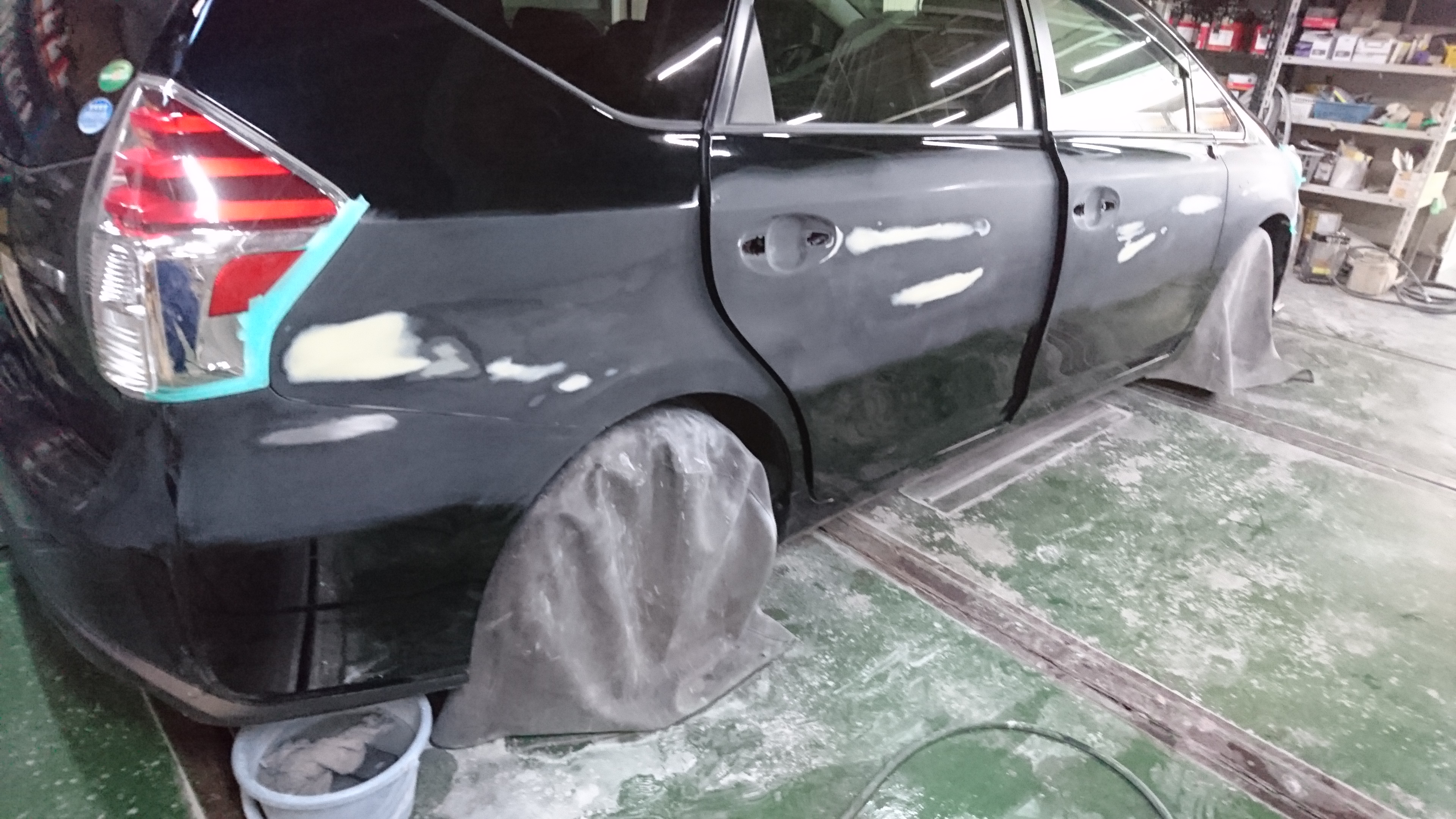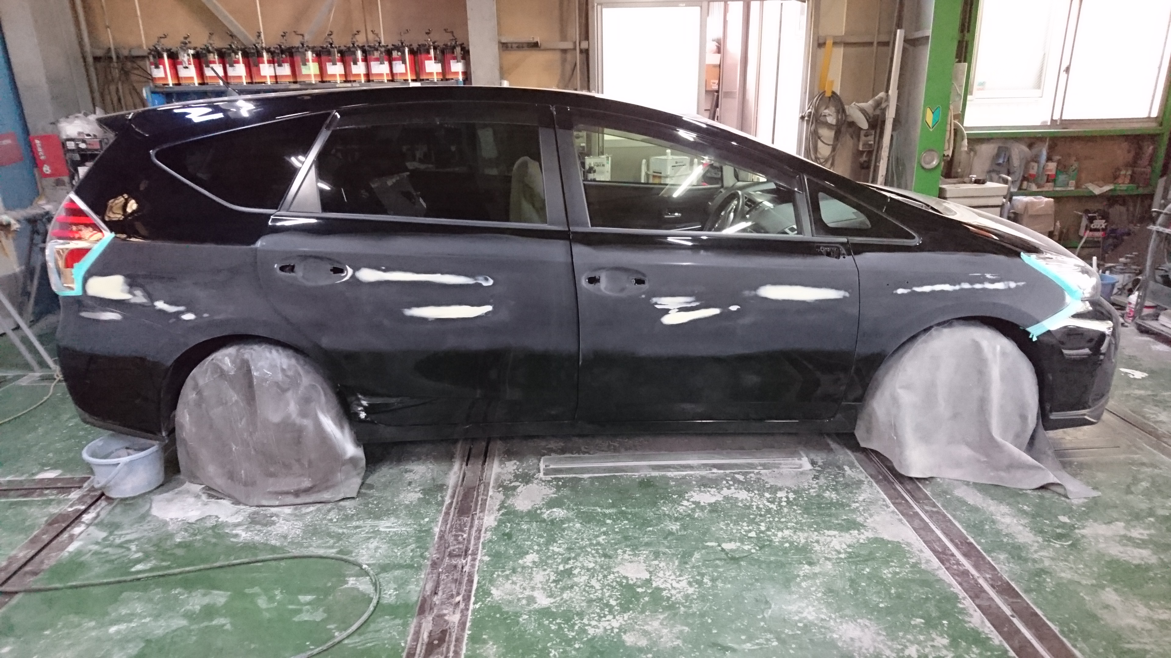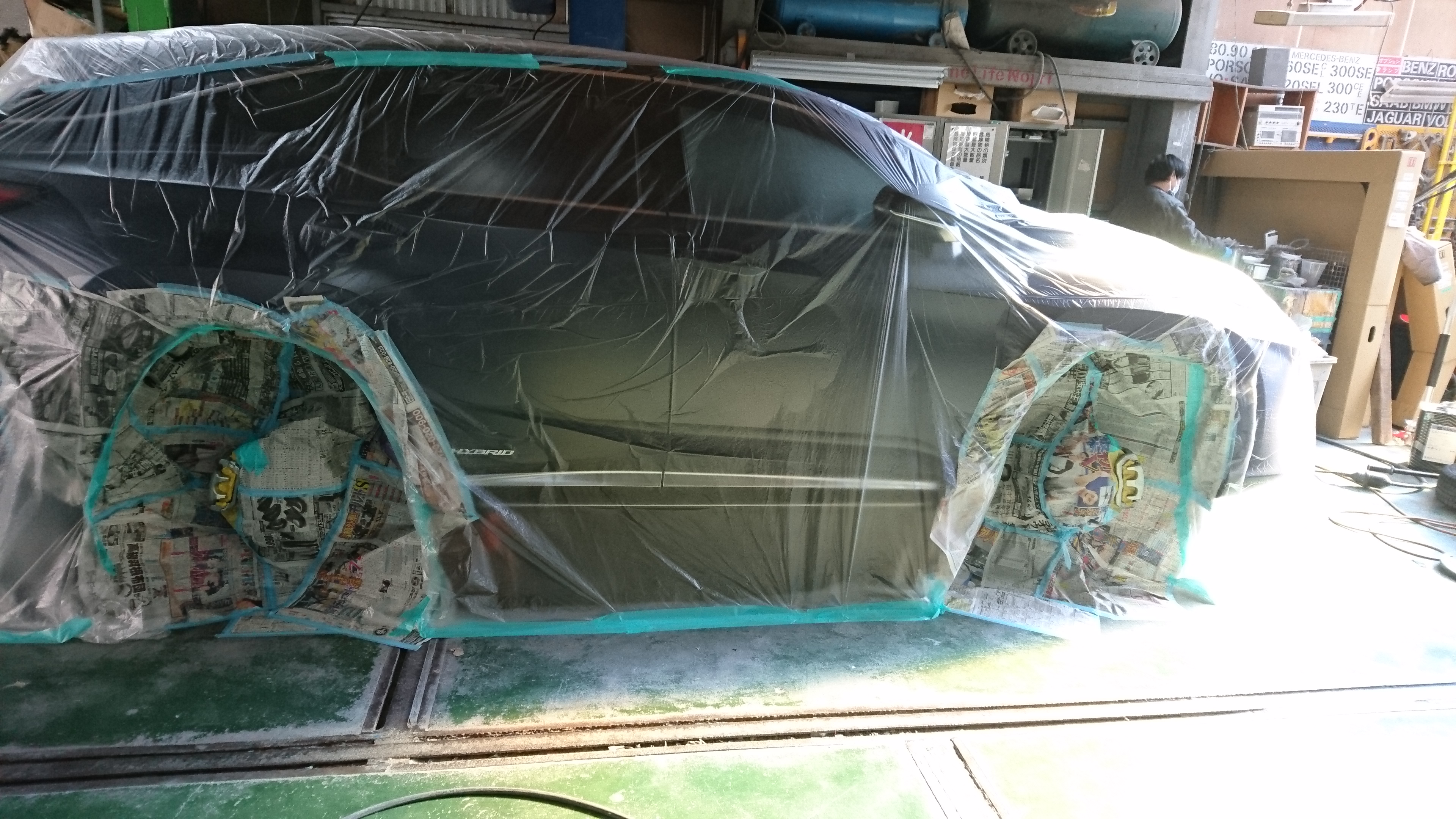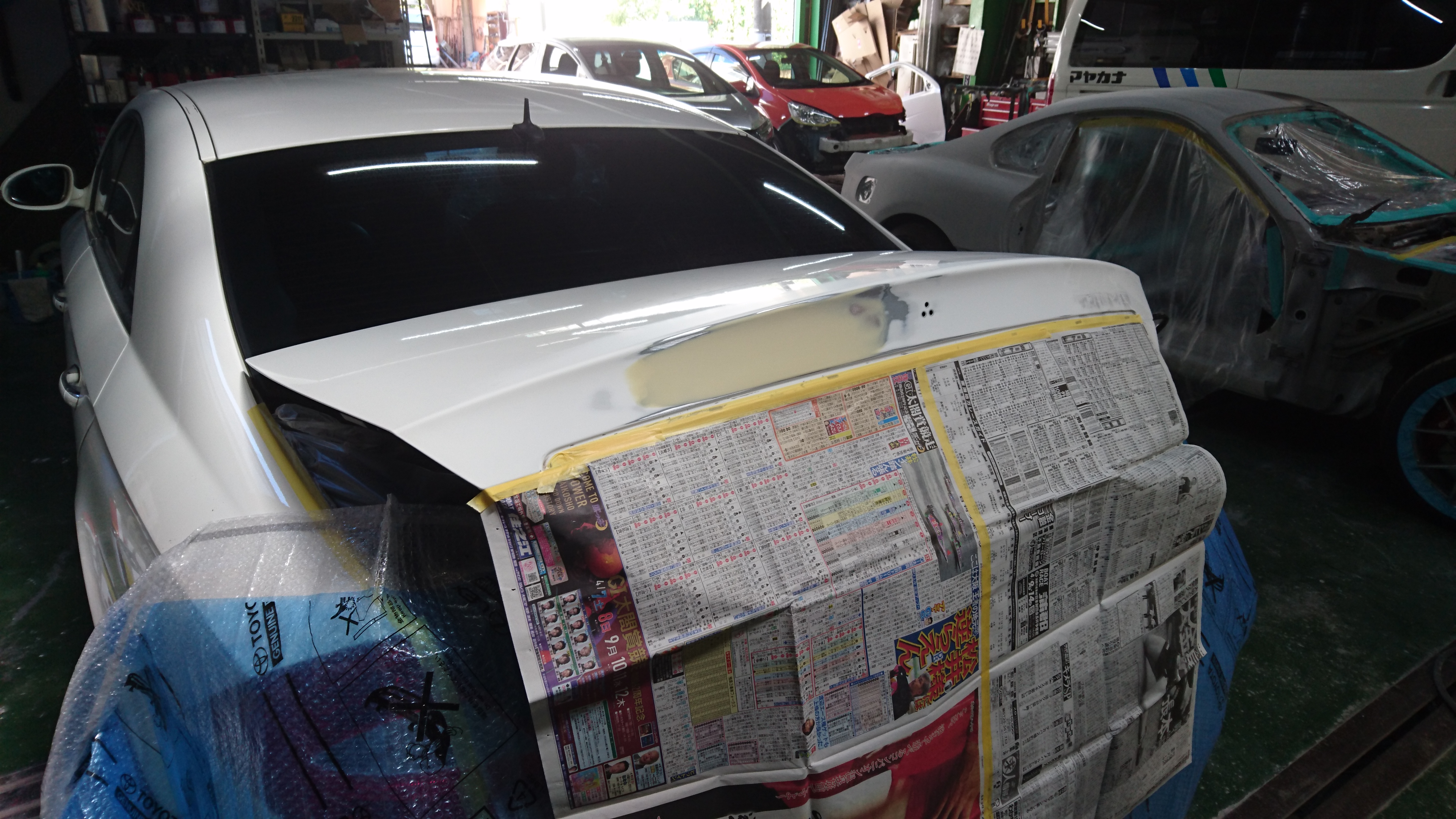 足付け、マスキング塗装です!今回はレクサスなボディーカラー4X2を塗装!