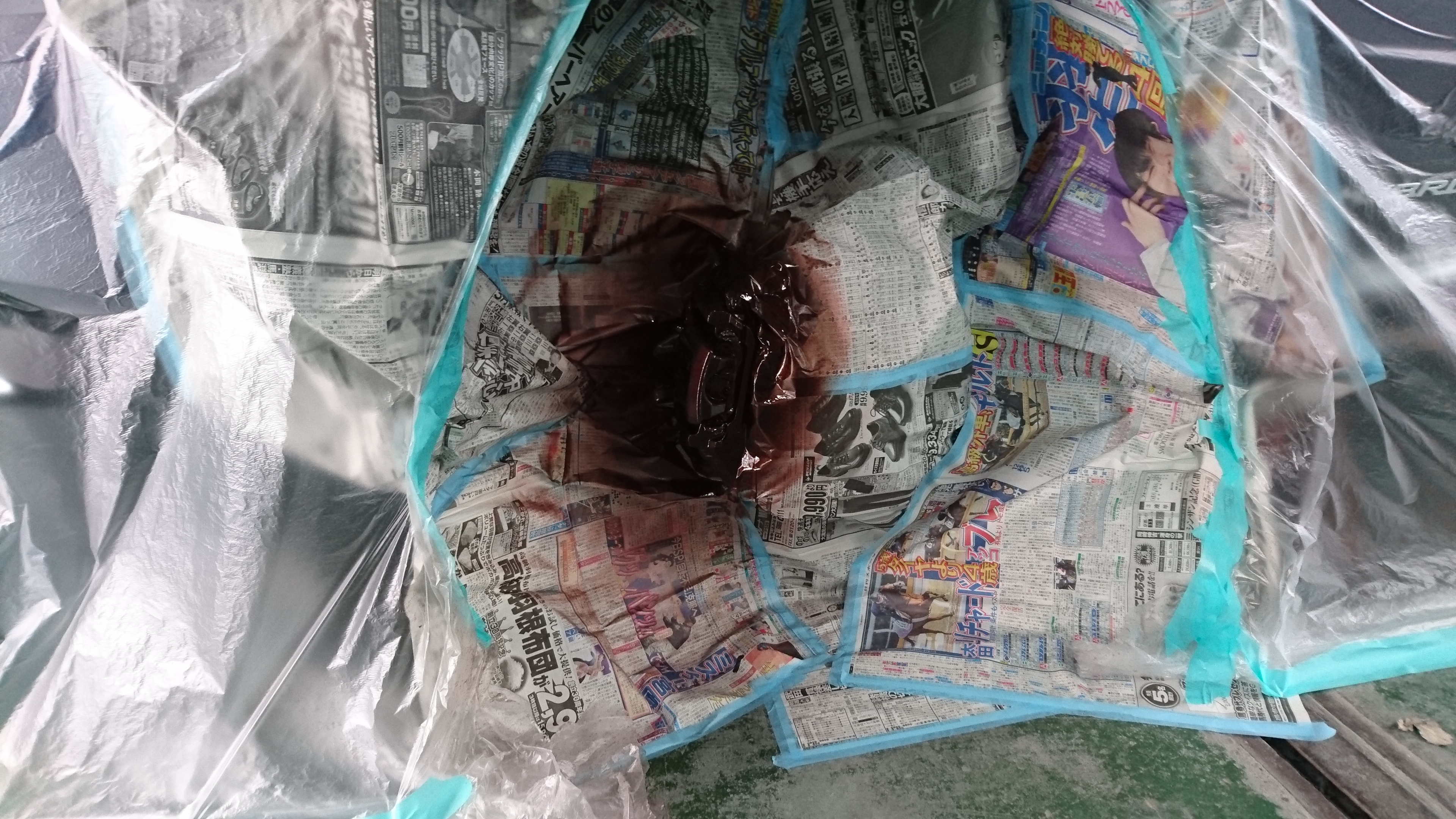 ばらし、下地作業中の一コマ右側面塗装完了です!