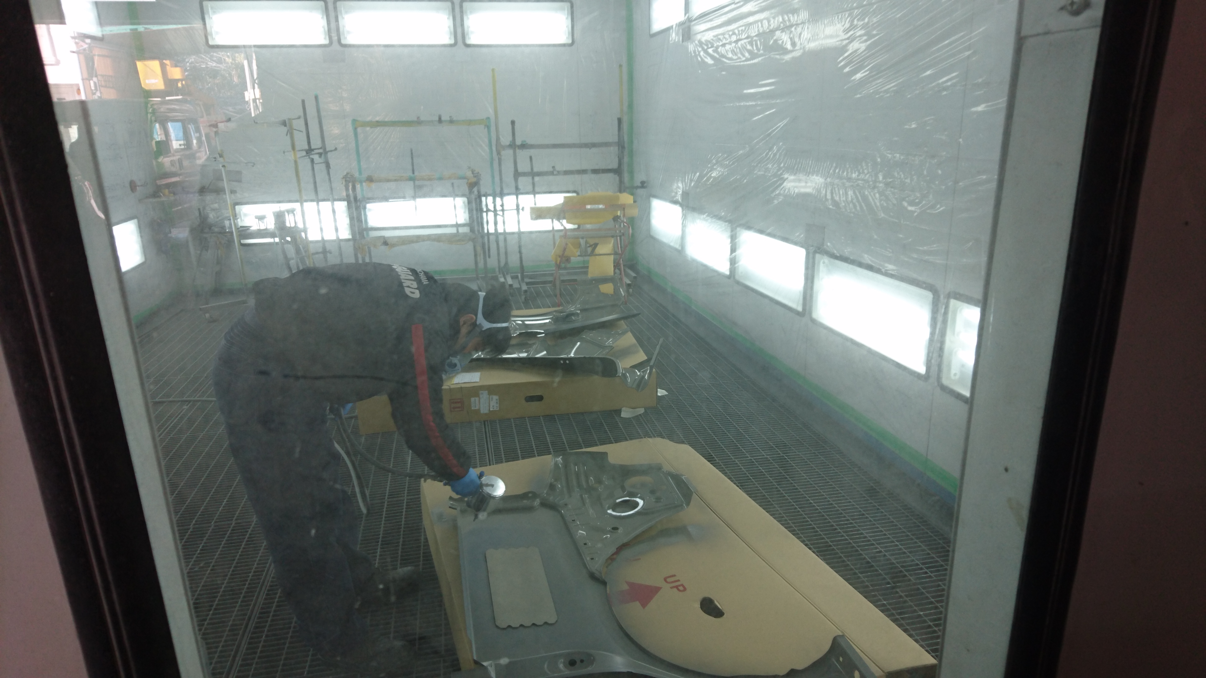 仮合わせ後、本溶接して下廻りの塗装シーリングを先に済ませてから、足回りを組み付けます