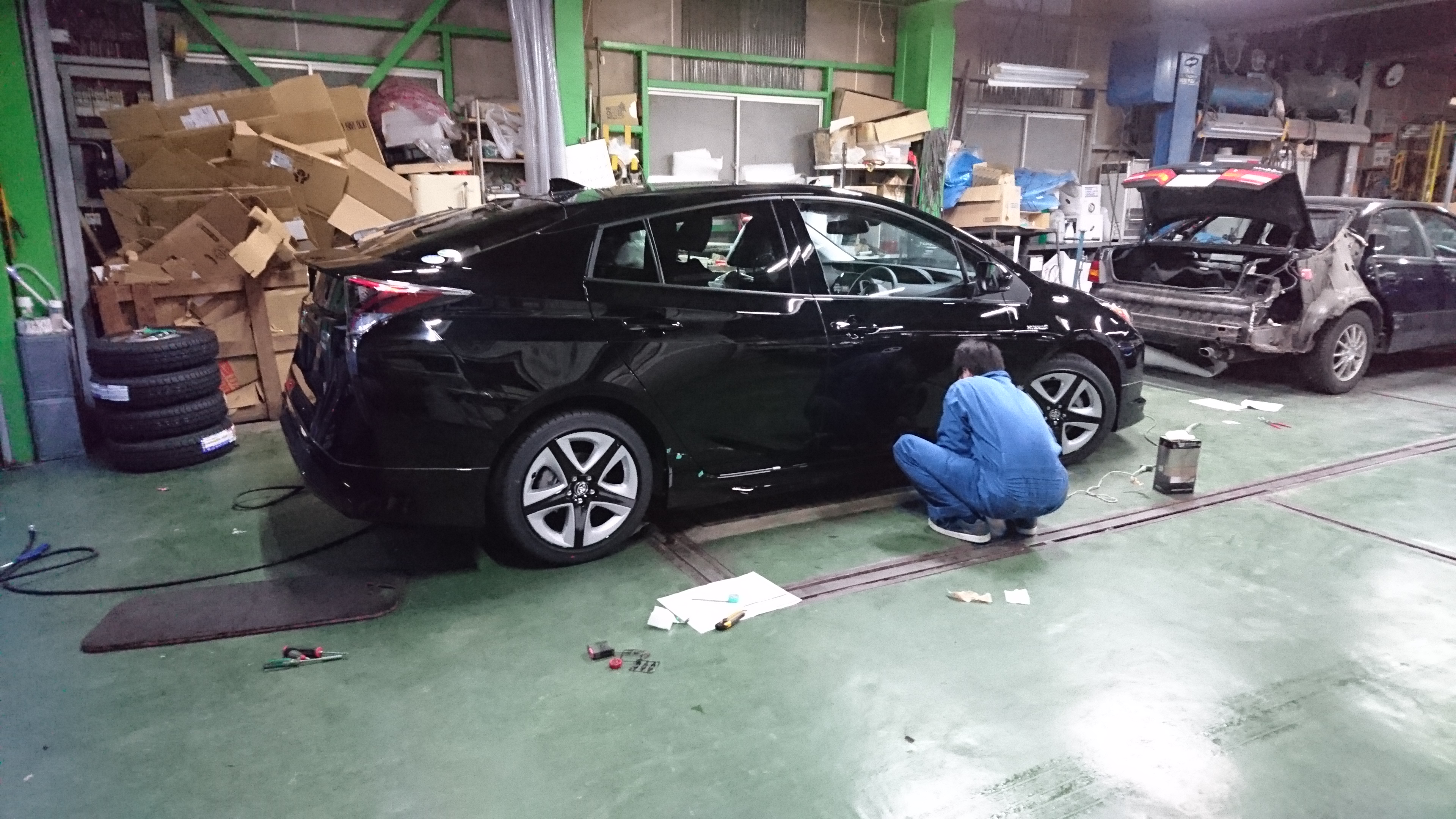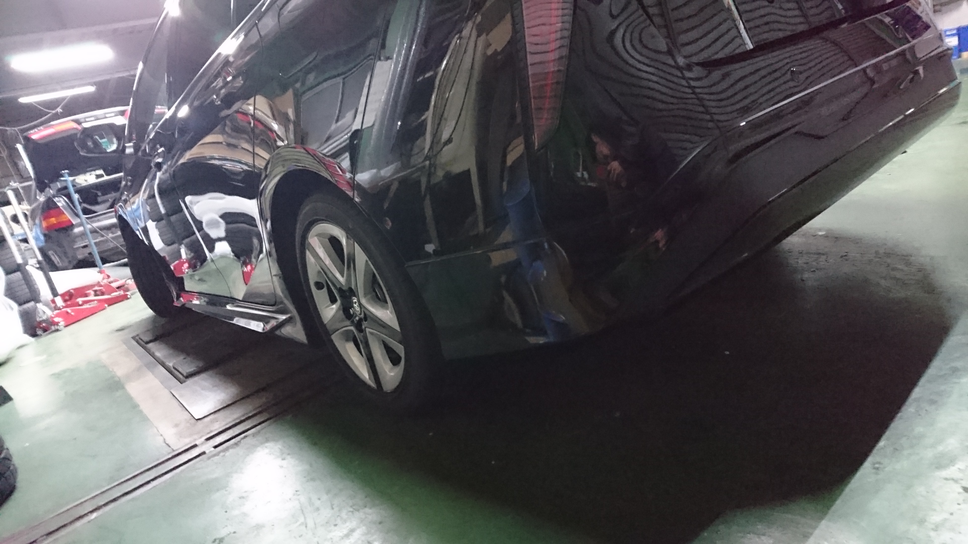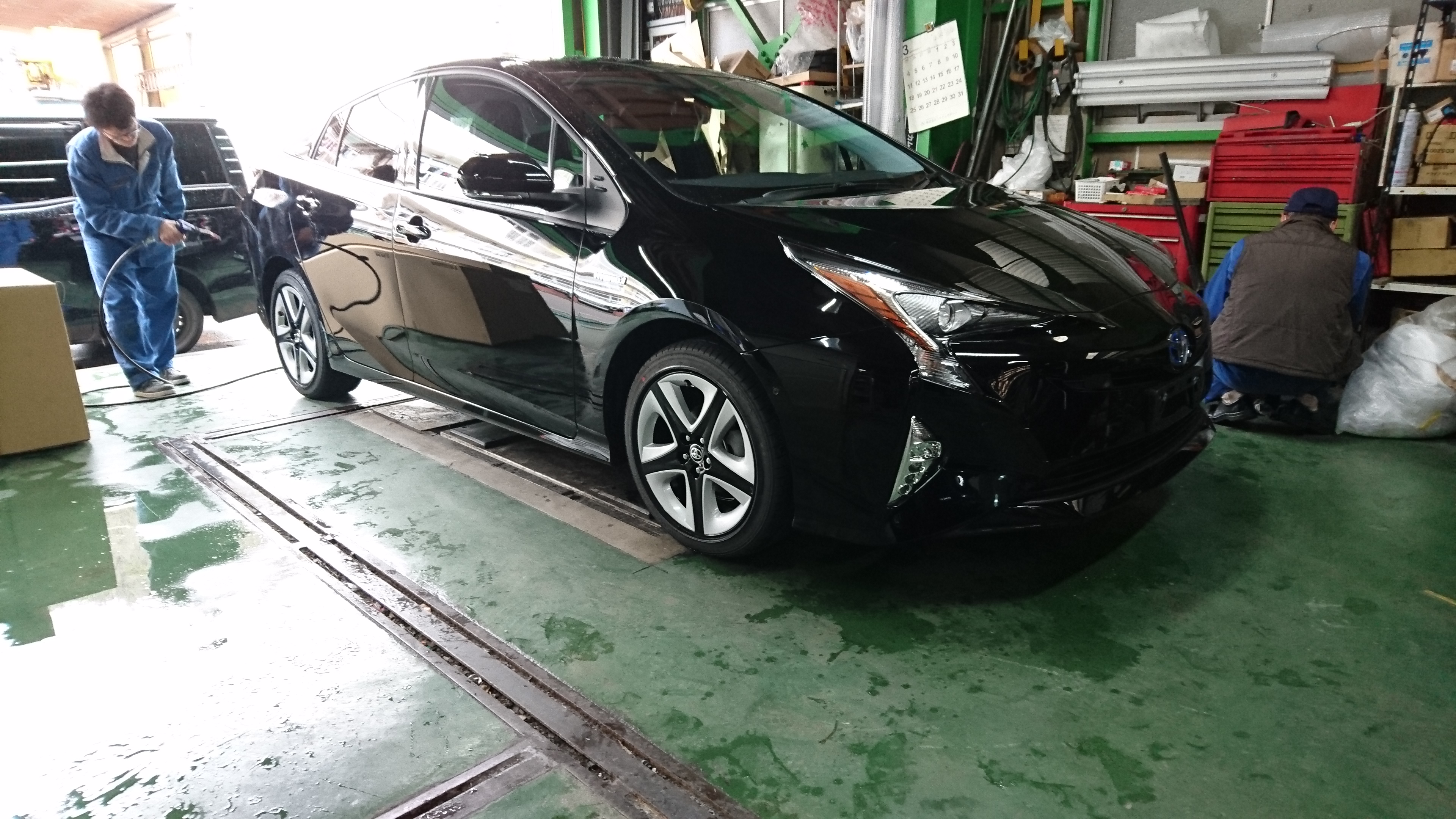 新車のプリウスαに下廻りのアンダーコートを施工です