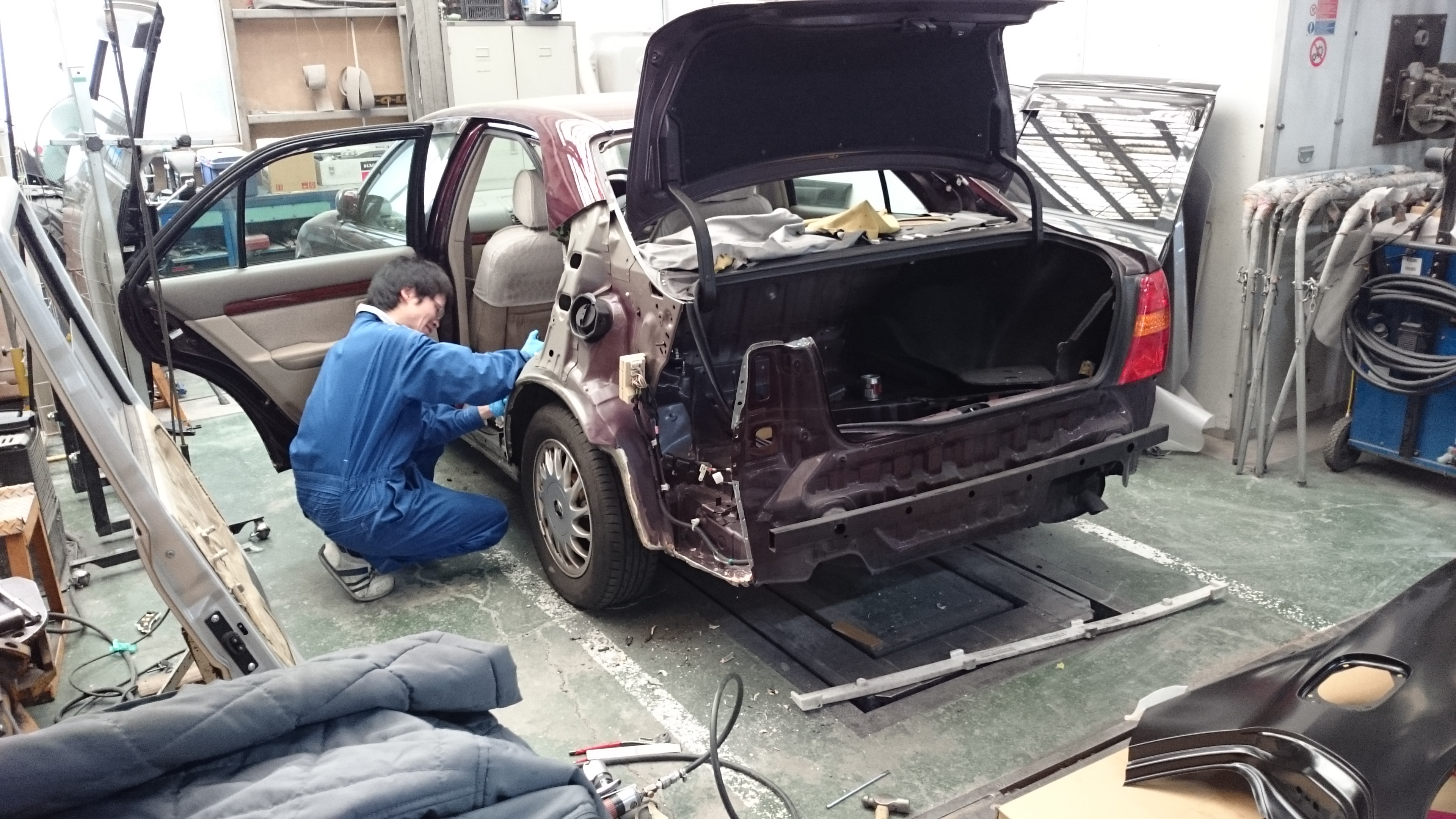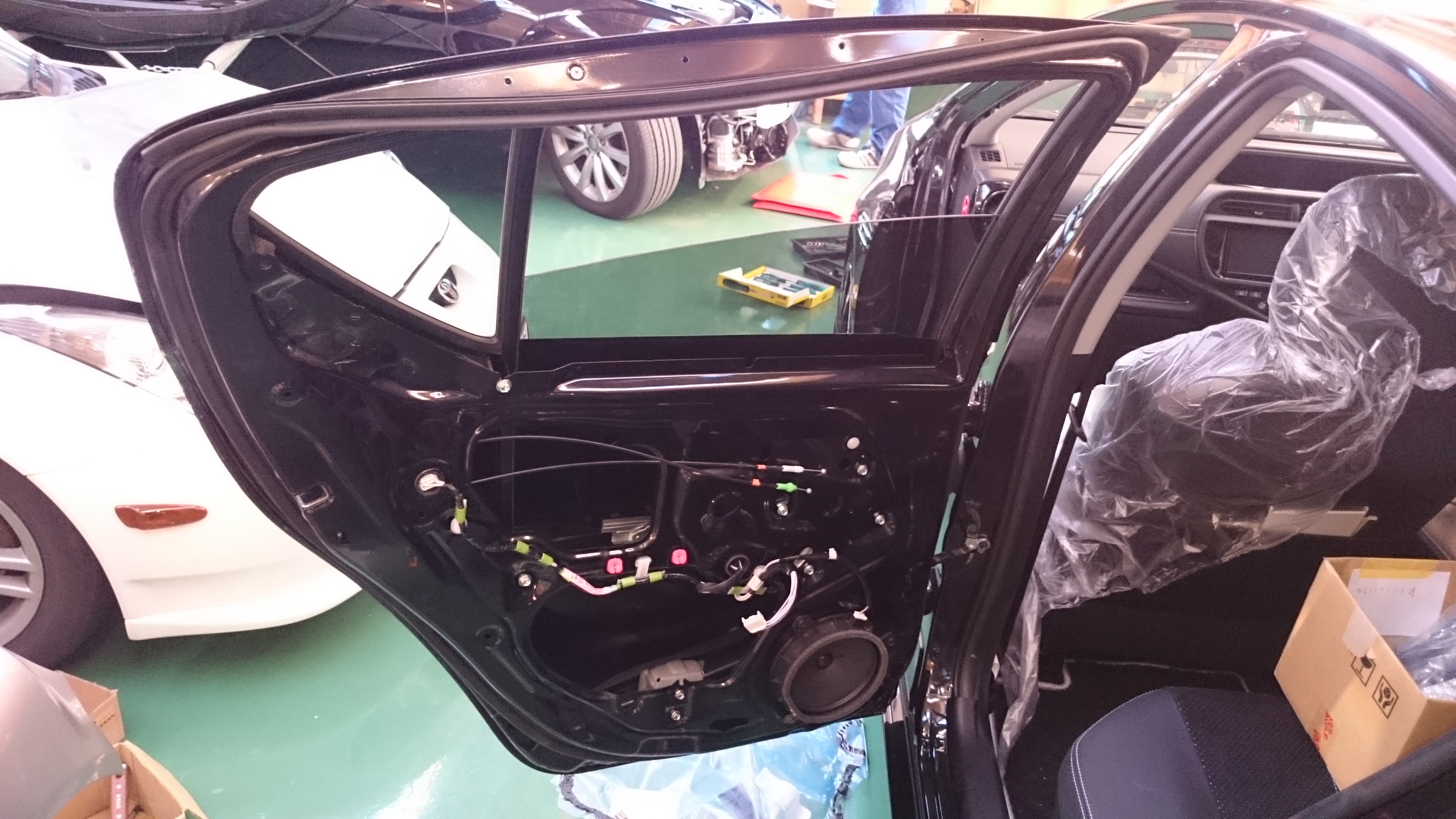 リアドアは新品のため元々付いていた部品を外して組み換えていきます!
