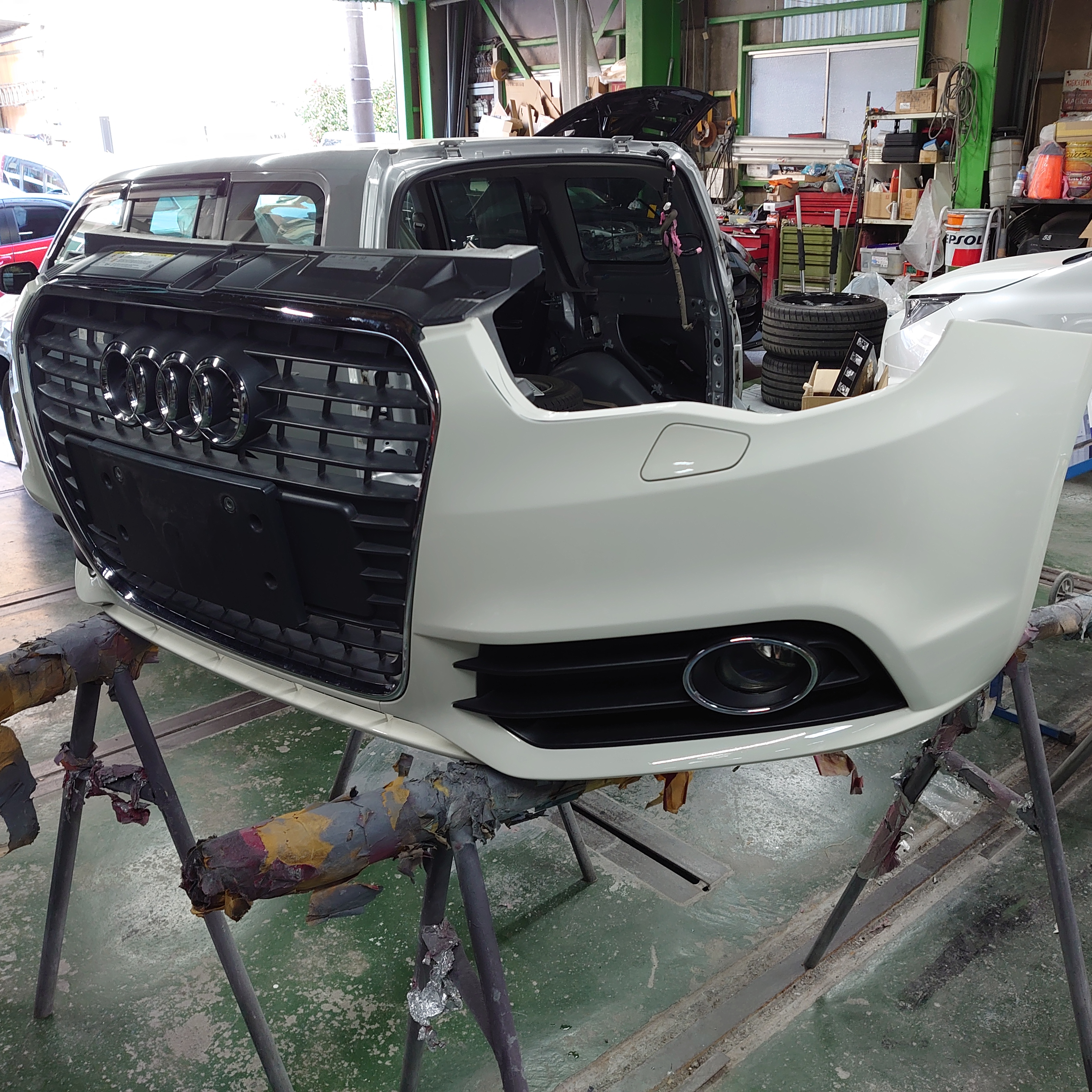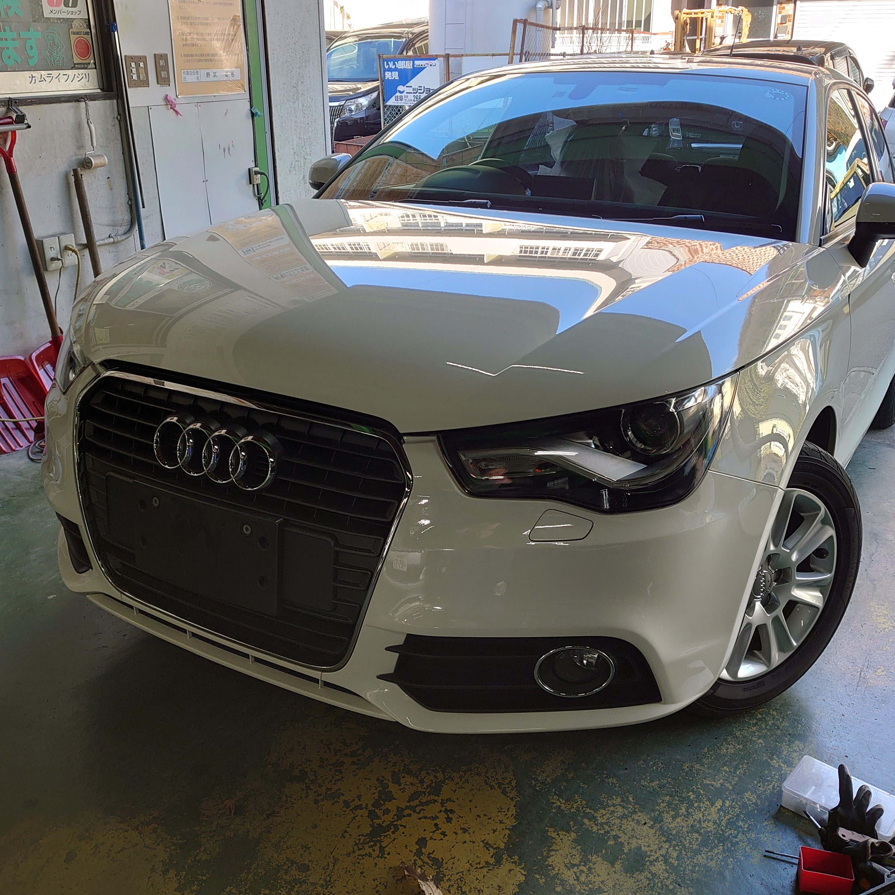 ヘッドライトコーティングとバンパー補修でお預かりのアウディA1