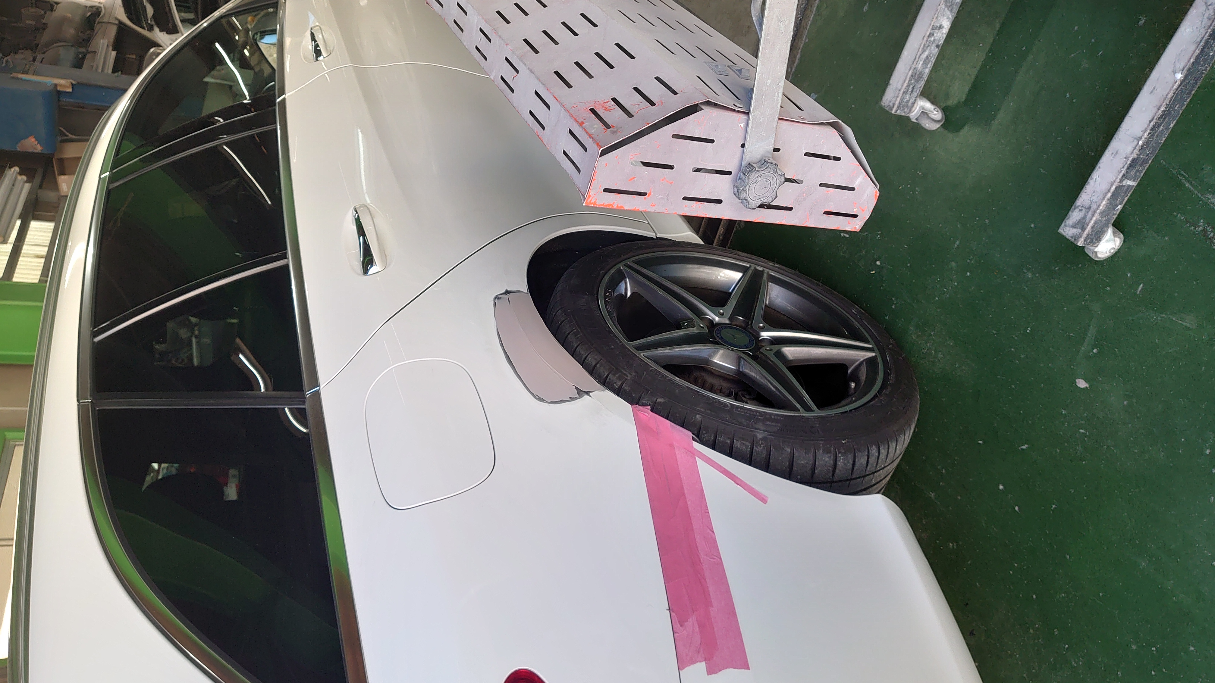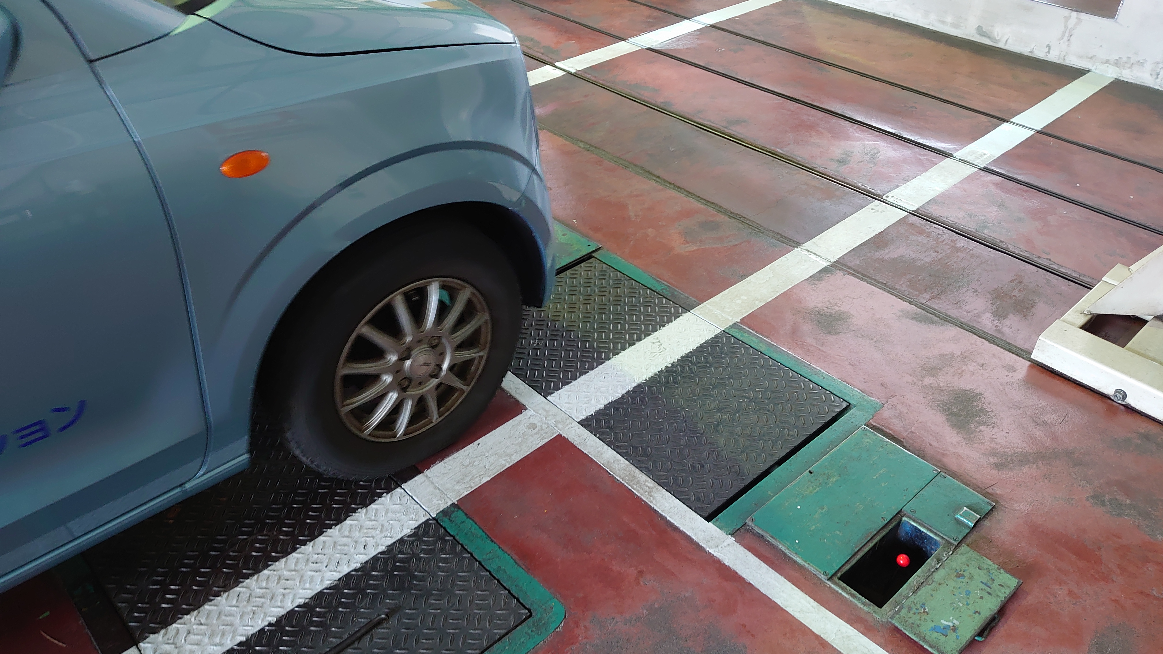 脱輪でロアーム交換後のサイドスリップ調整をしてます。