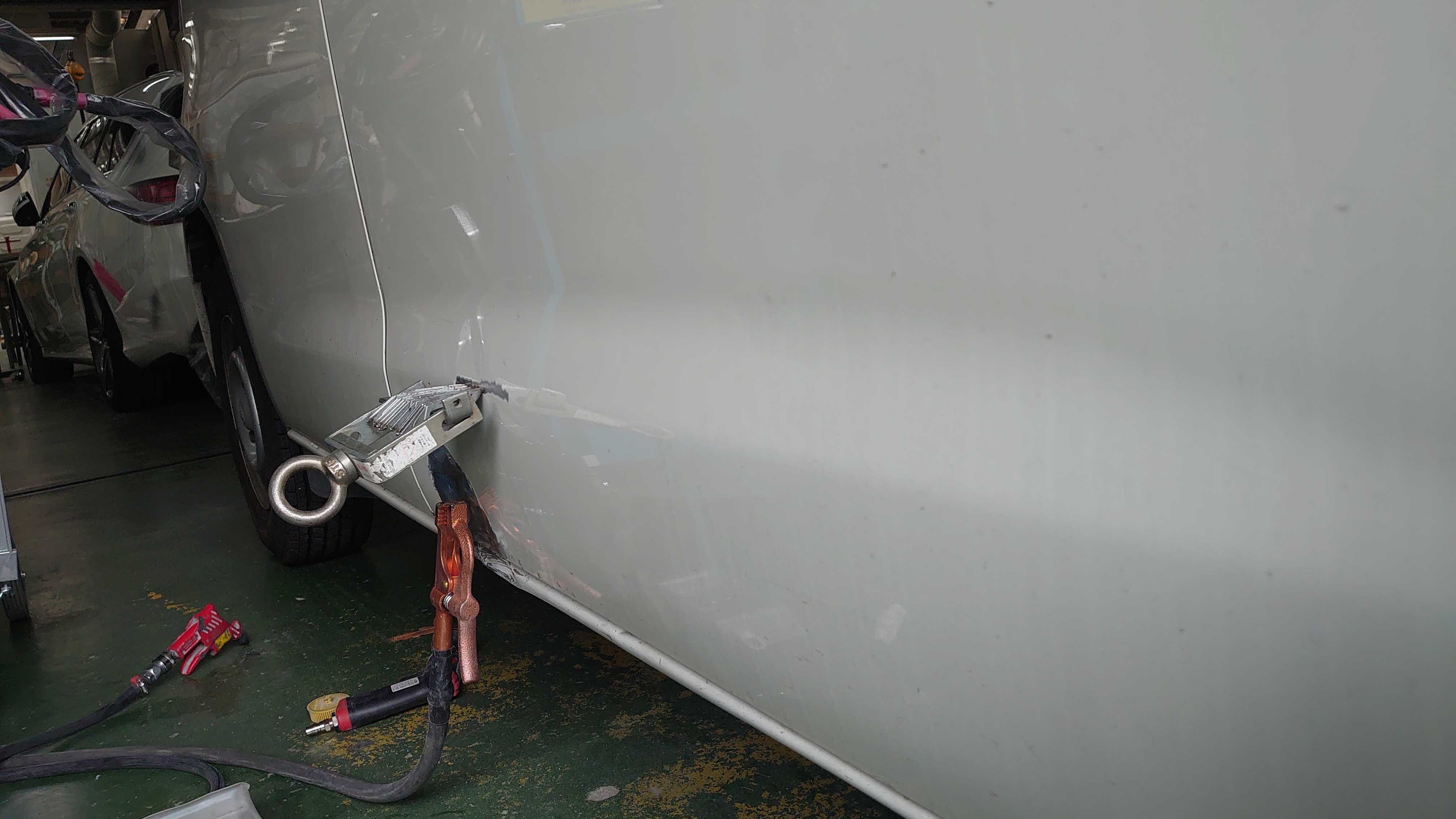 損傷した鉄板の状態を見ながら作業手順&方法を選定して引き出しています