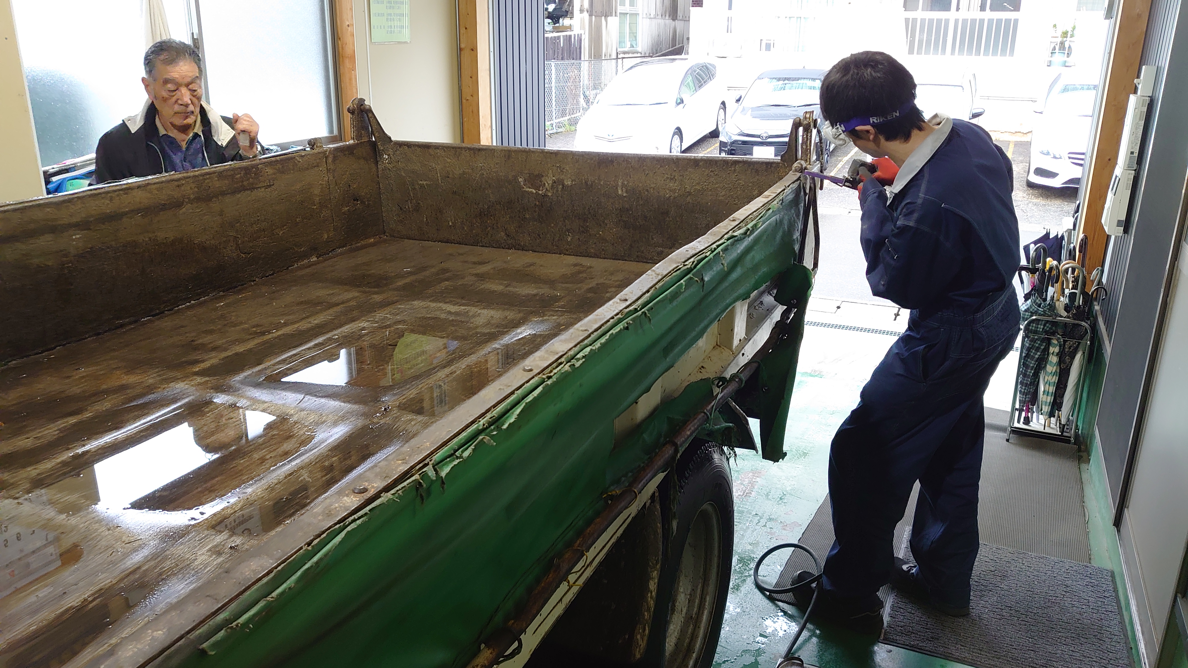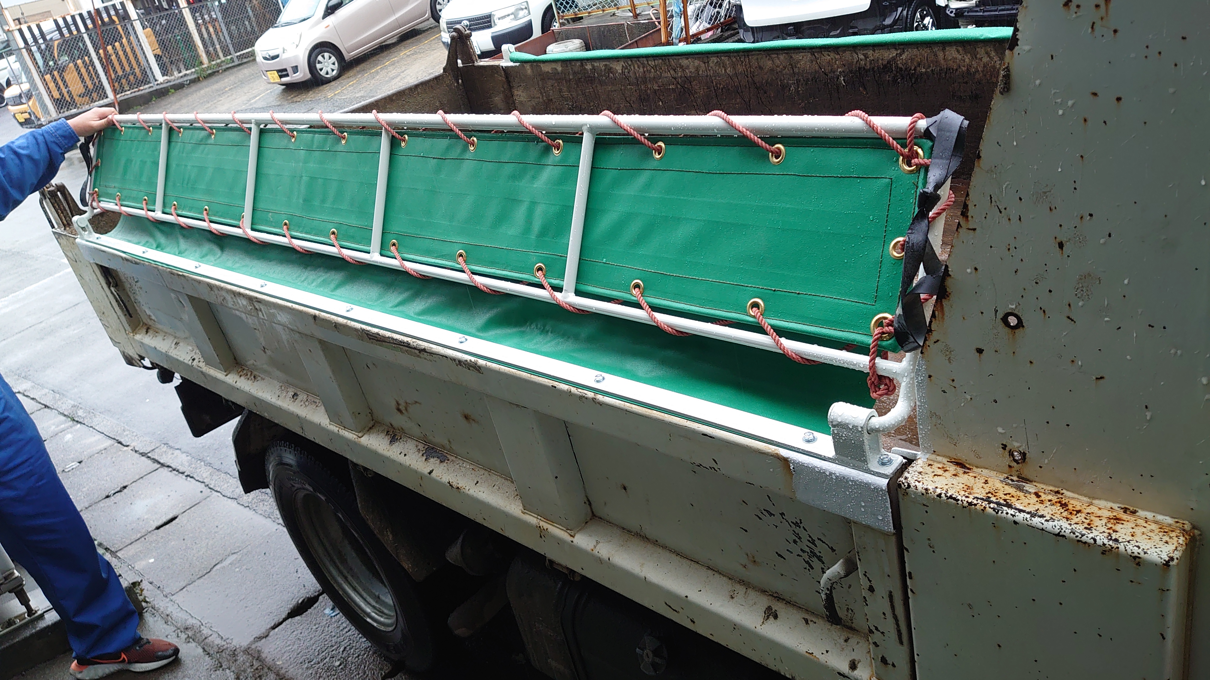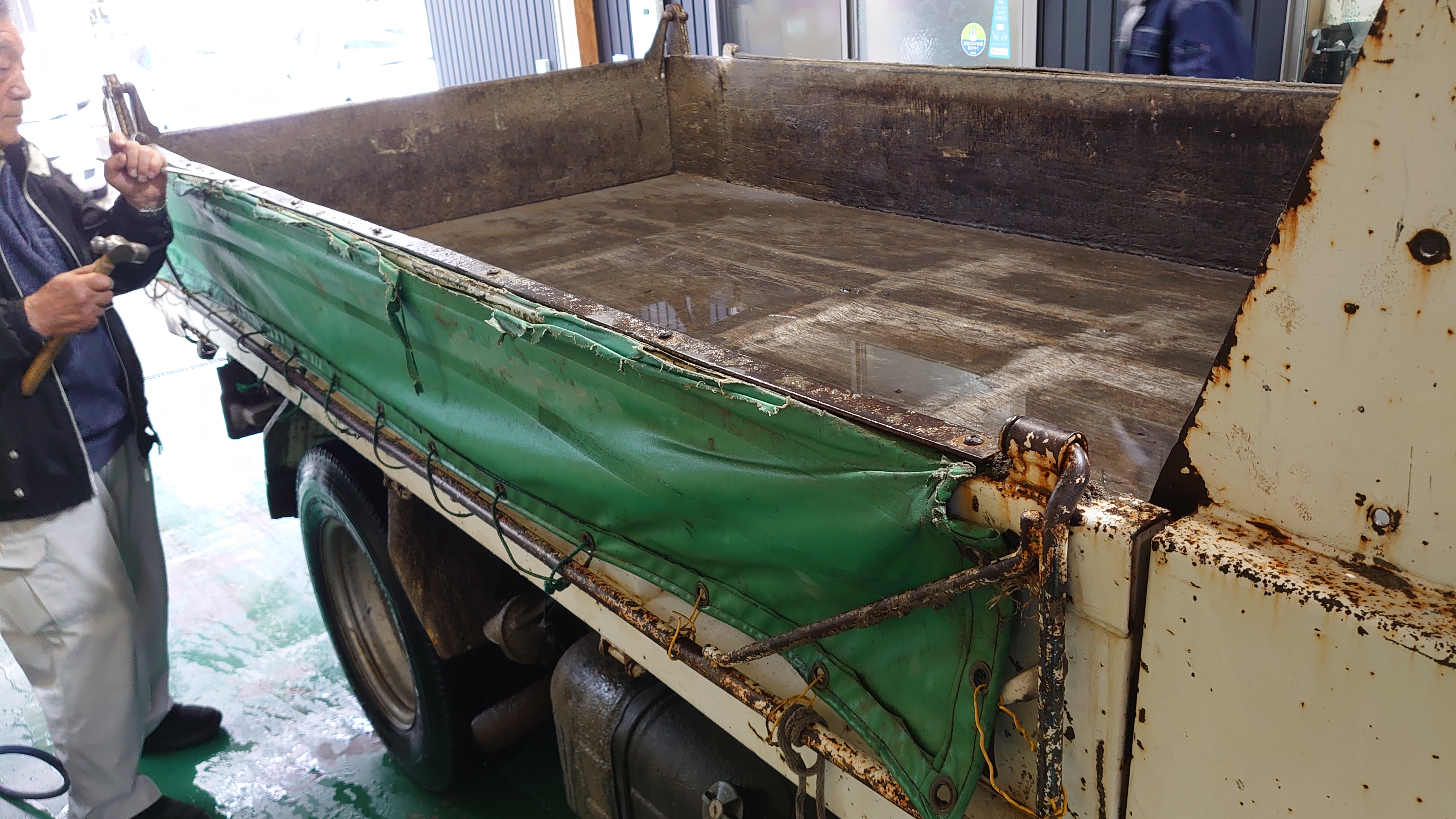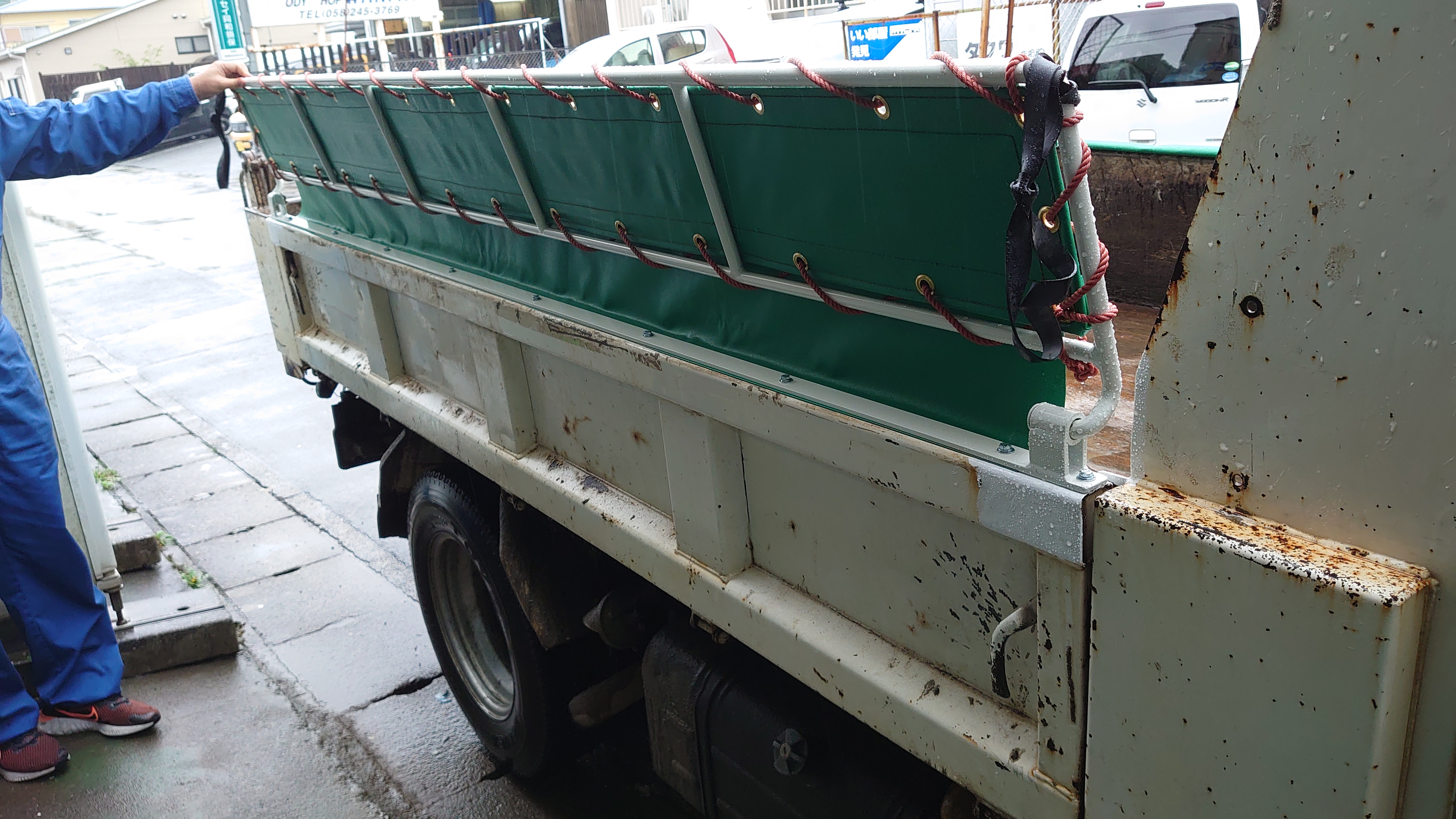 トラックのアオリ上のガードが腐ってグサグサになってしまっているので、仕事に差し支えるので交換のご依頼を受けました。