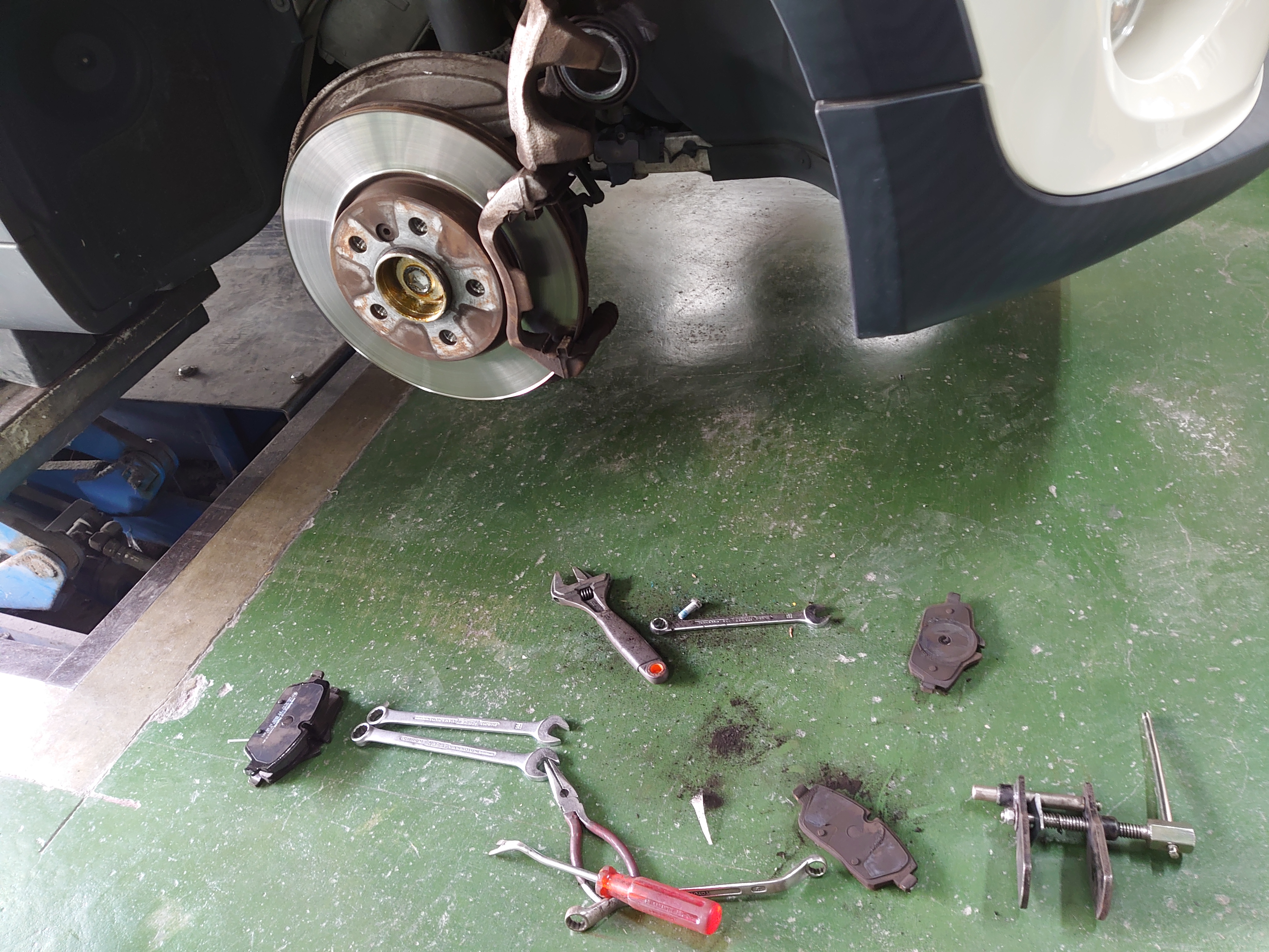 整備の方ではタイミングベルト、テンショナー、ウォーターポンプ等の関連部品の交換作業をしています!