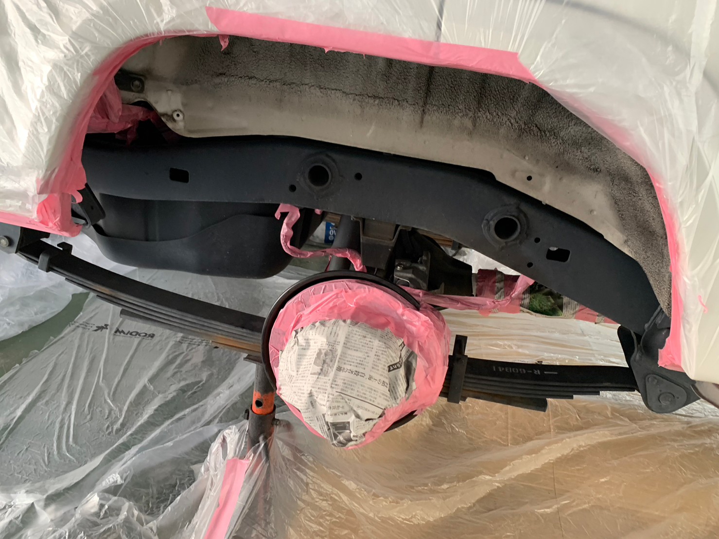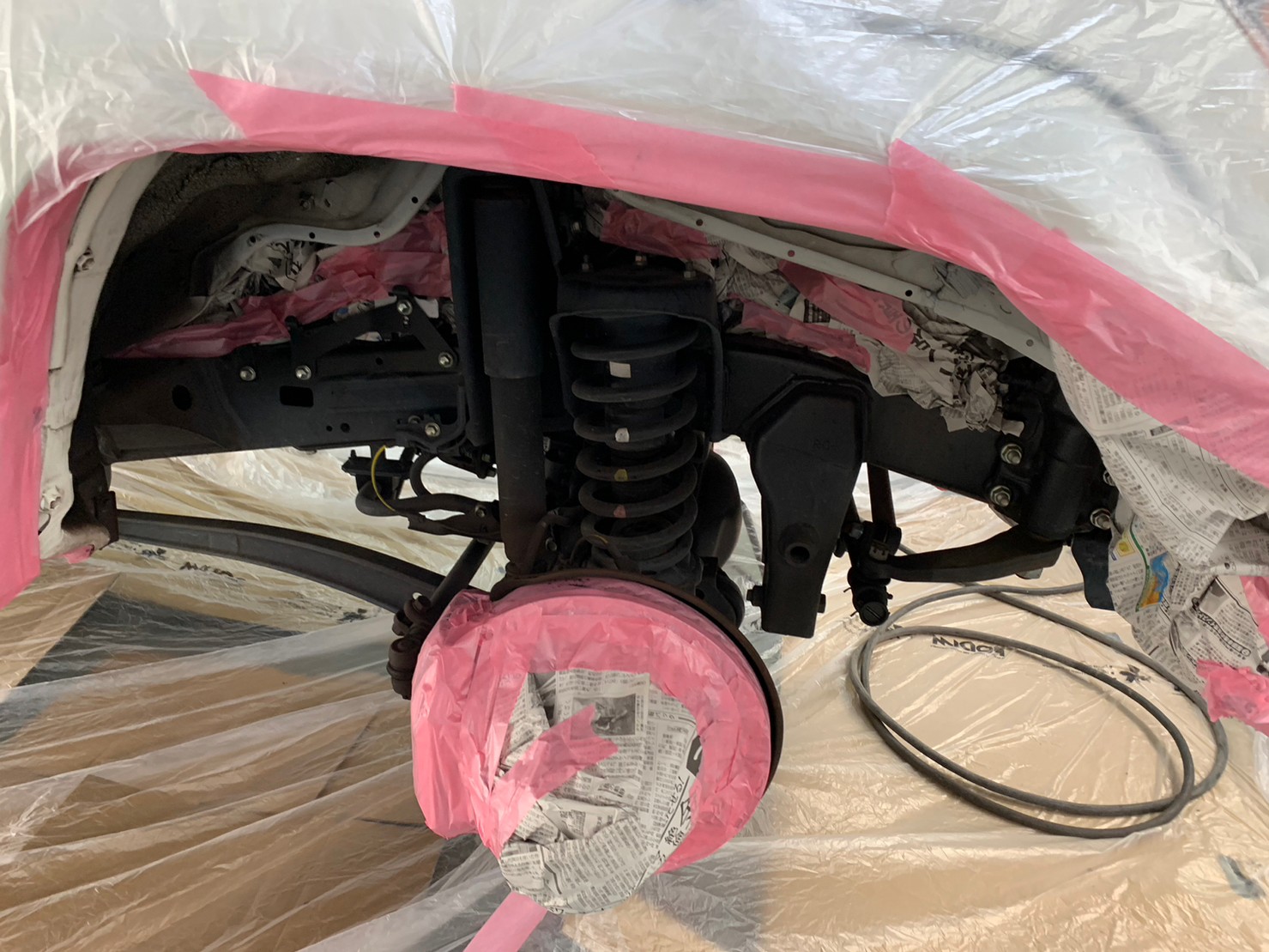 ジャッキアップして、マスキングの出来る箇所をしっかりとマスキングします!